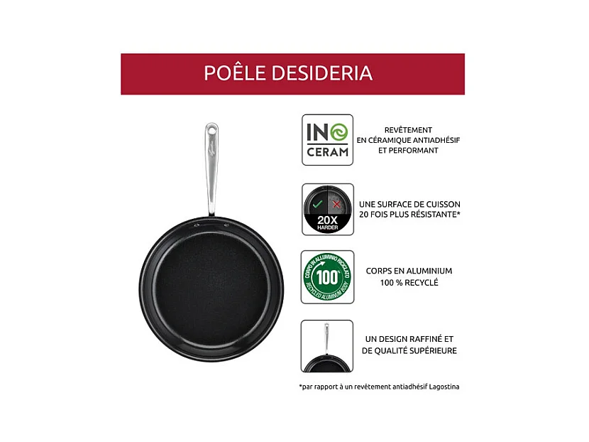 Lagostina Desideria Keramikpfanne 24 cm - Antihaftbeschichtung, Thermo-Fusion, Recyceltes Aluminium - Schwarz