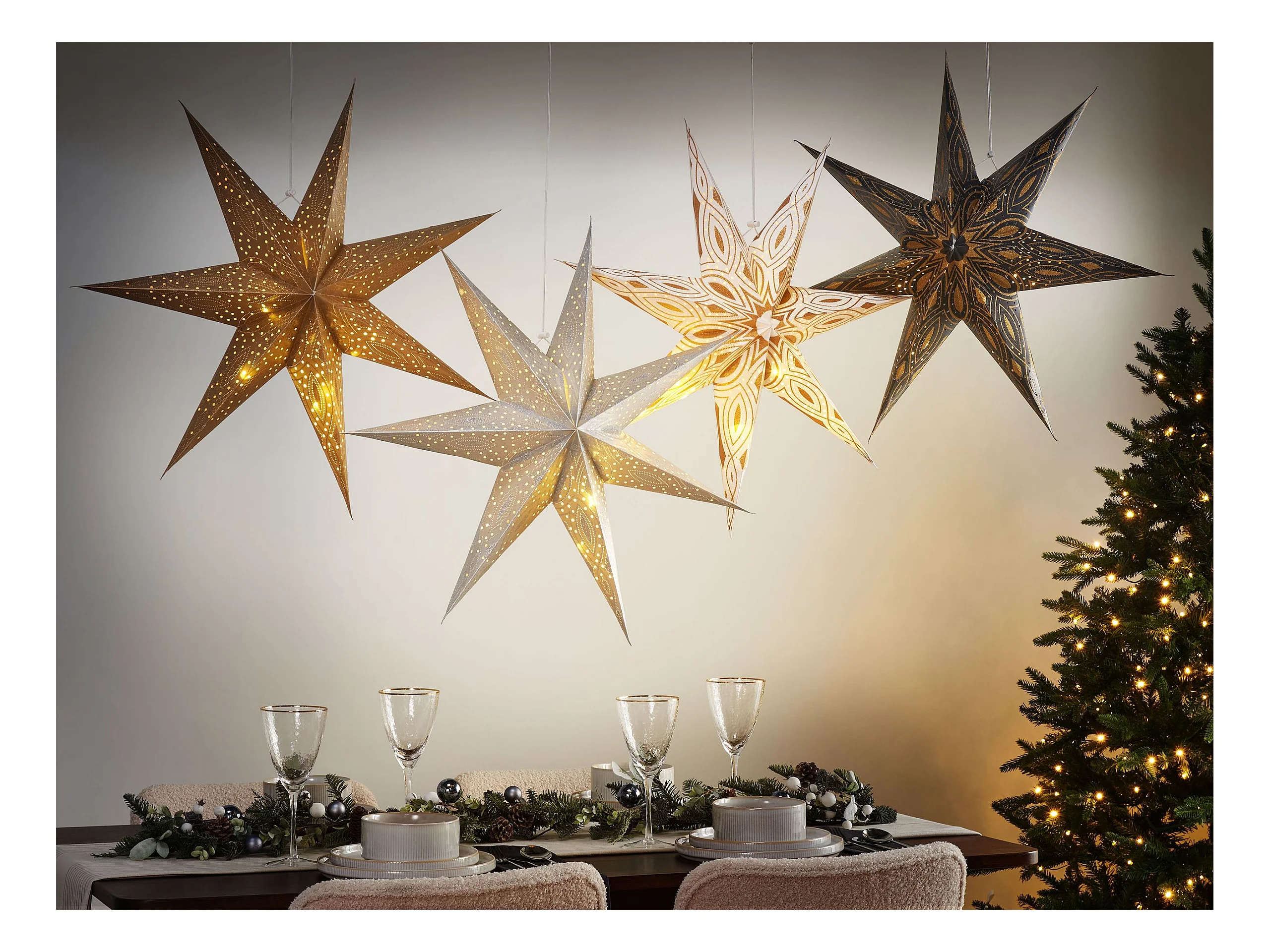 LED-Weihnachtsdekoration zum Aufhängen 4 Sterne Papier Handgemacht Mehrfarbig Shivling