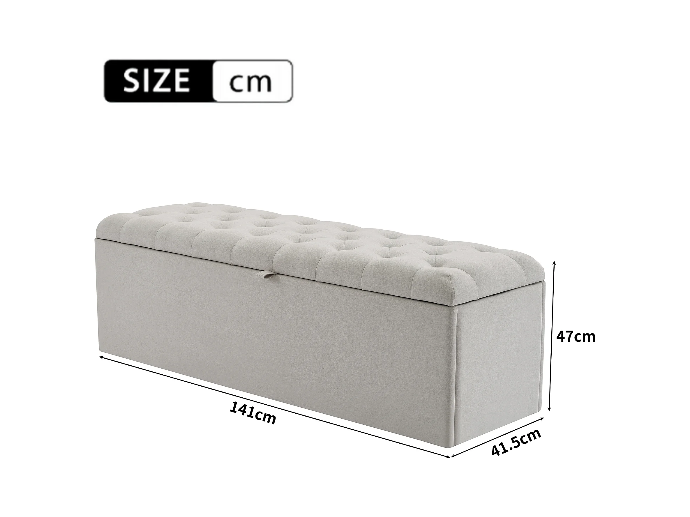 Leinen, Polsterbank, 141*41.5*47cm,Gepolsterte Sitzbank, Betthocker, Bank mit Stauraum