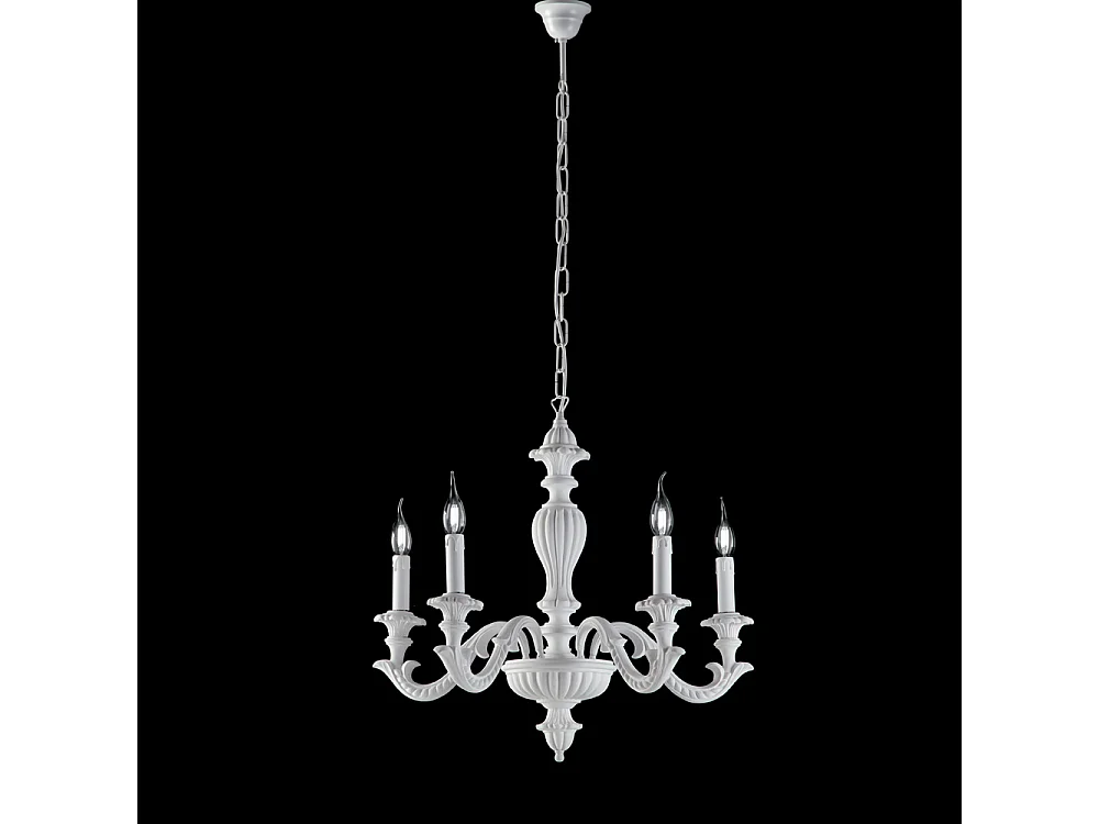 Leonardo - Schäbiger weißer Holzkronleuchter 5 Lichter 117 - Ø53 - BL180-5-BCO