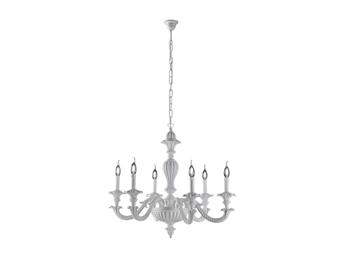 Leonardo - Schäbiger weißer Holzkronleuchter 6 Lichter 130 - Ø74 - BL180-6-BCO