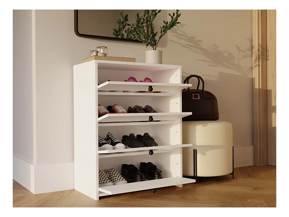 LOKA – Schuhschrank mit 4 Klappen – modernes Design – weiß