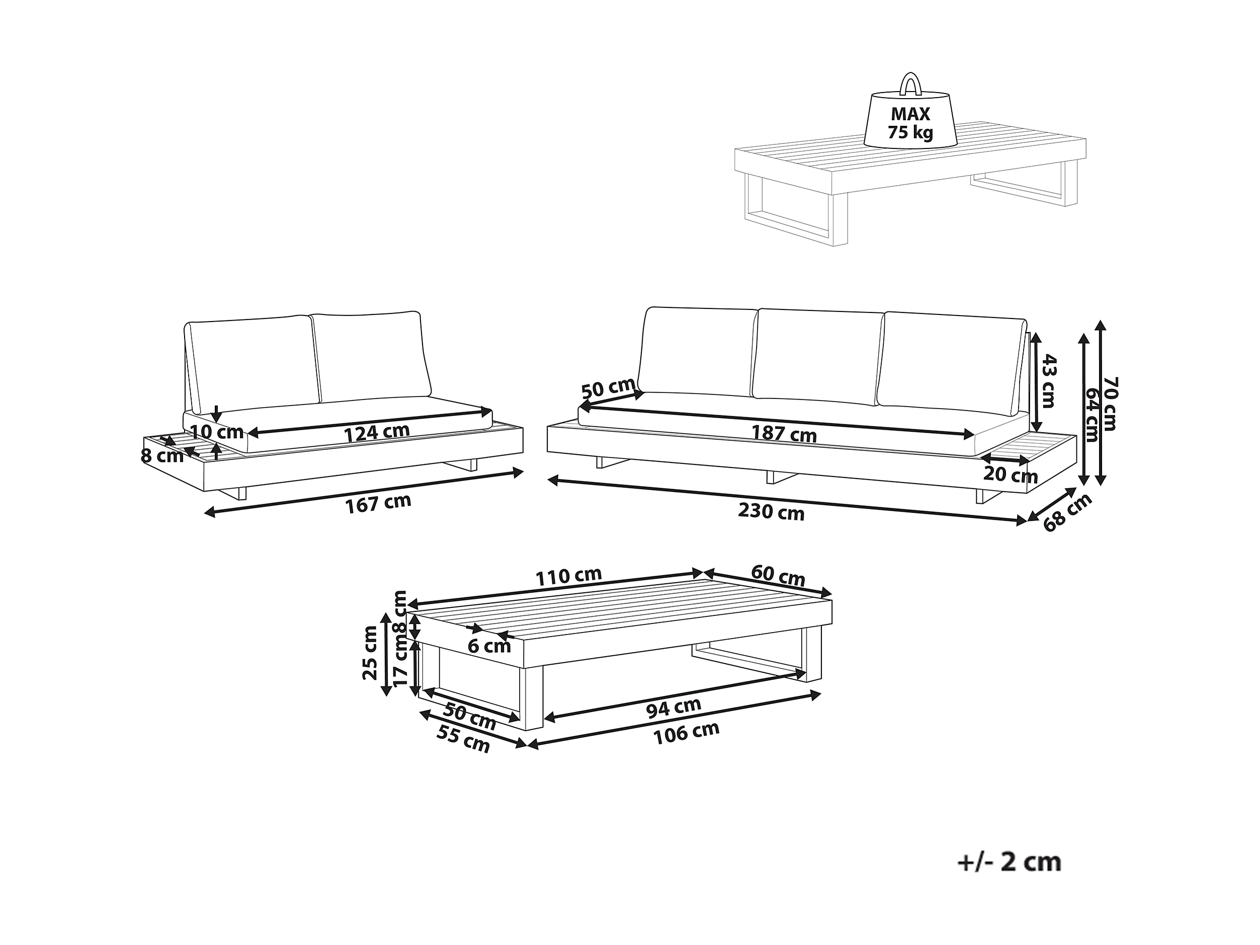 Lounge Set Akazienholz hellbraun 5-Sitzer Auflagen weiß mit Couchtisch Modern Marettimo