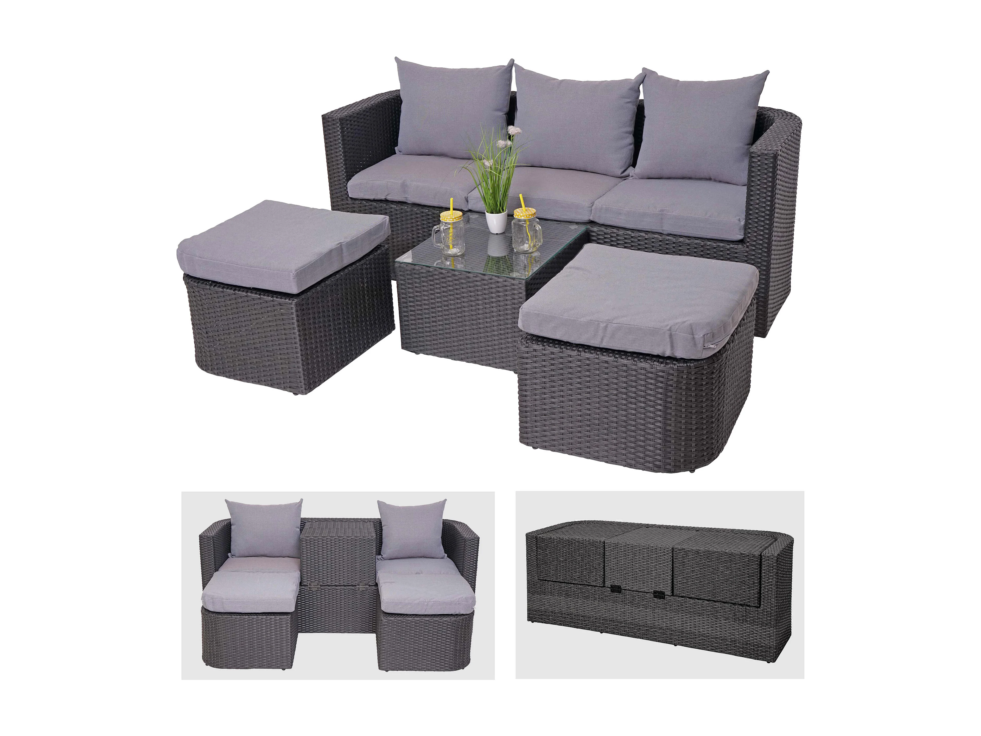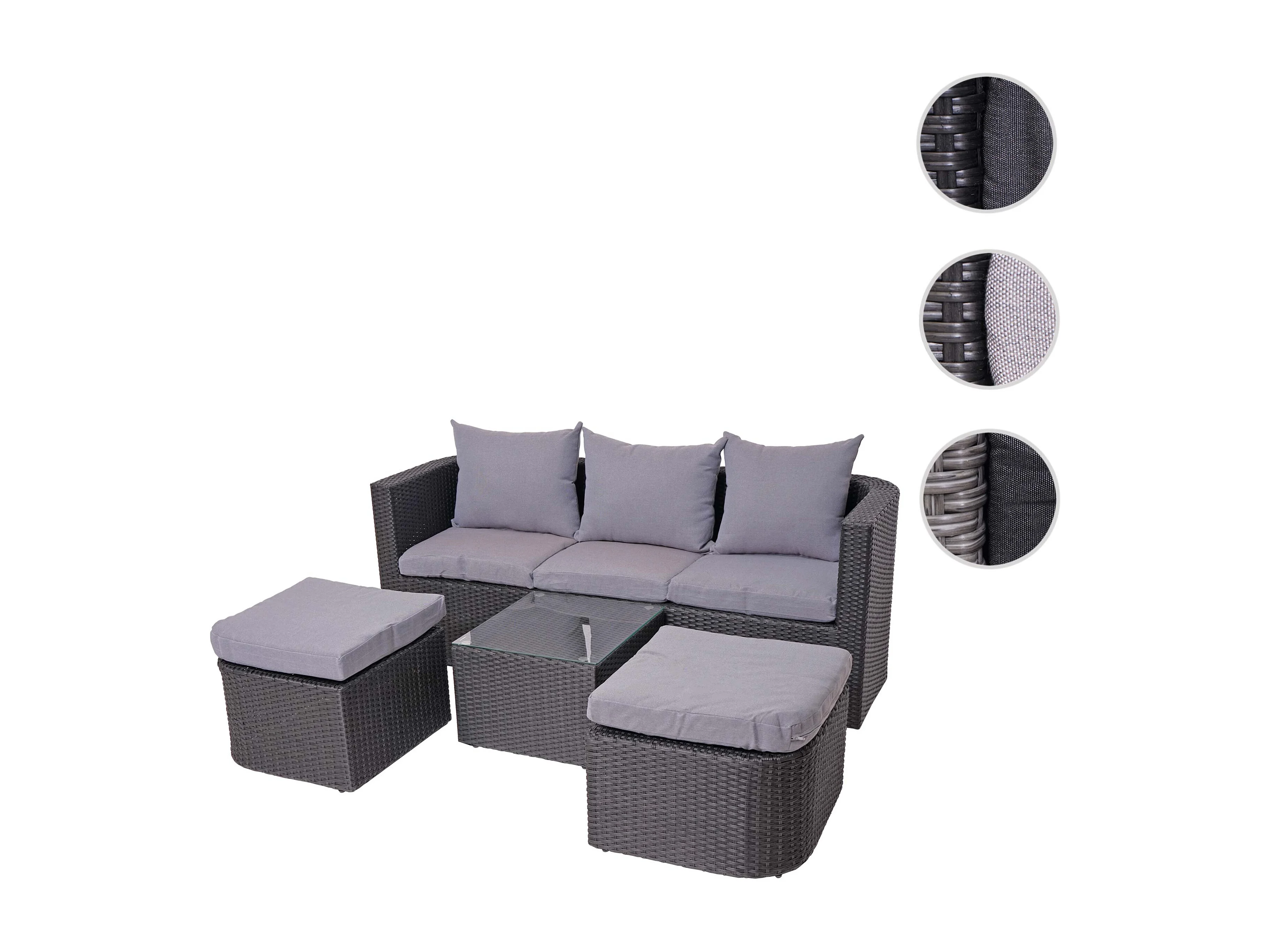 Lounge-Set MCW-J37 (4-Teilig), Anthrazit, Kissen hellgrau