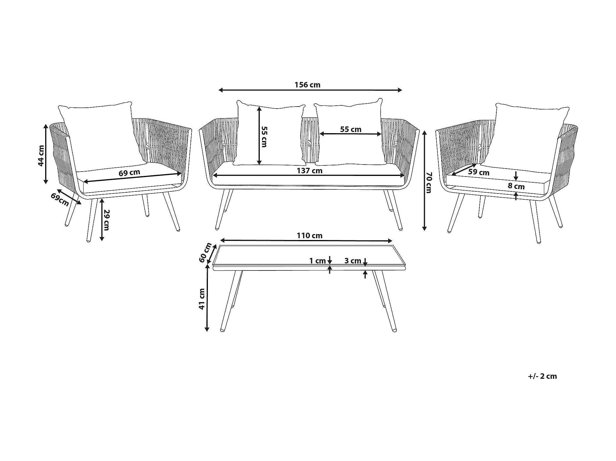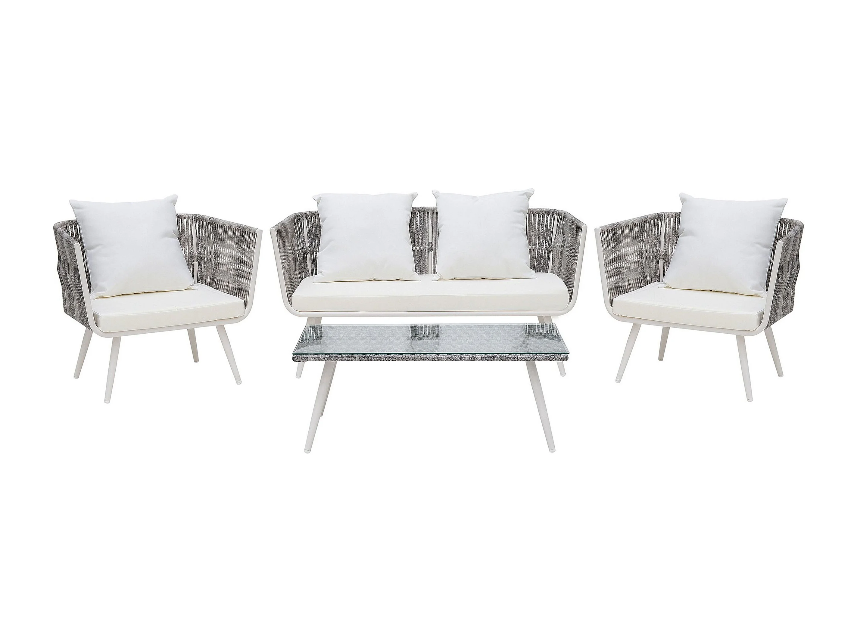 Lounge Set mit Tisch 4-Sitzer RAGUSA Polyrattan Cremeweiss