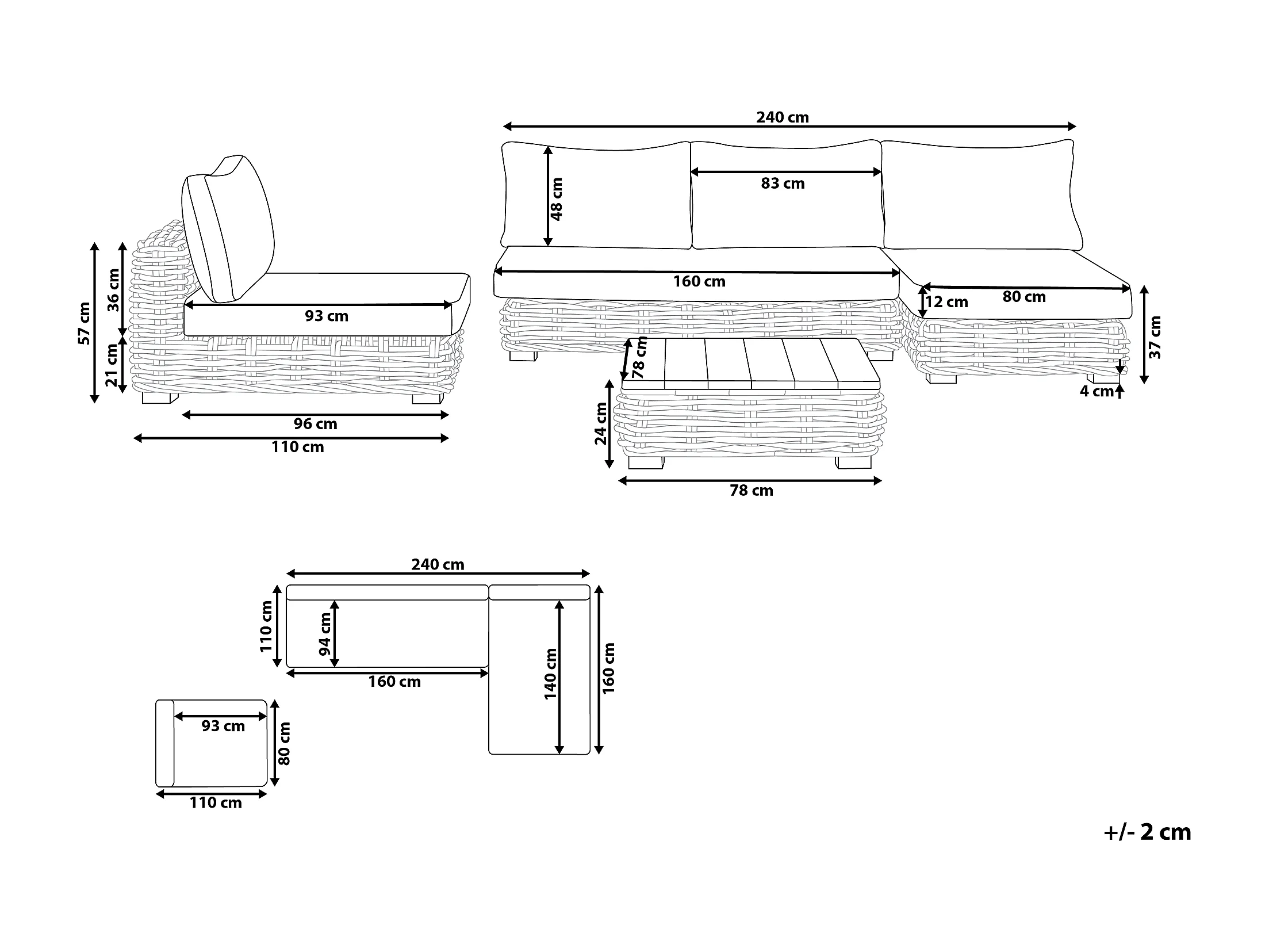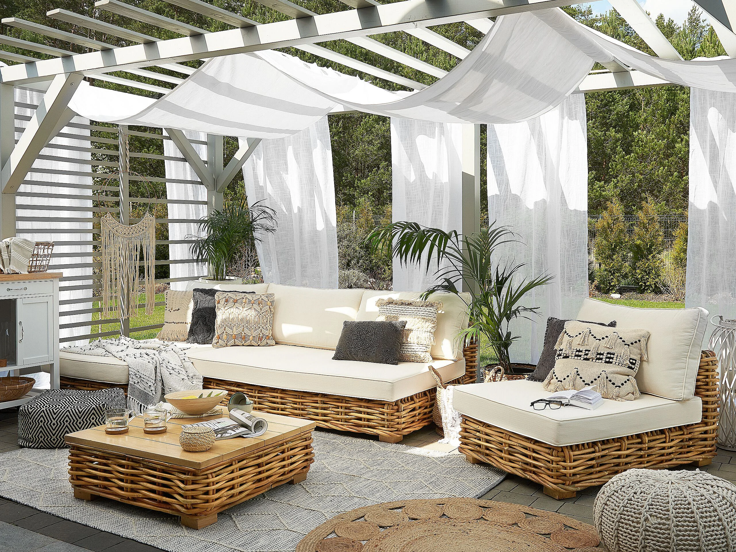 Lounge Set Rattan natürlich 4 Personen linksseitig Auflagen cremeweiß Varallo
