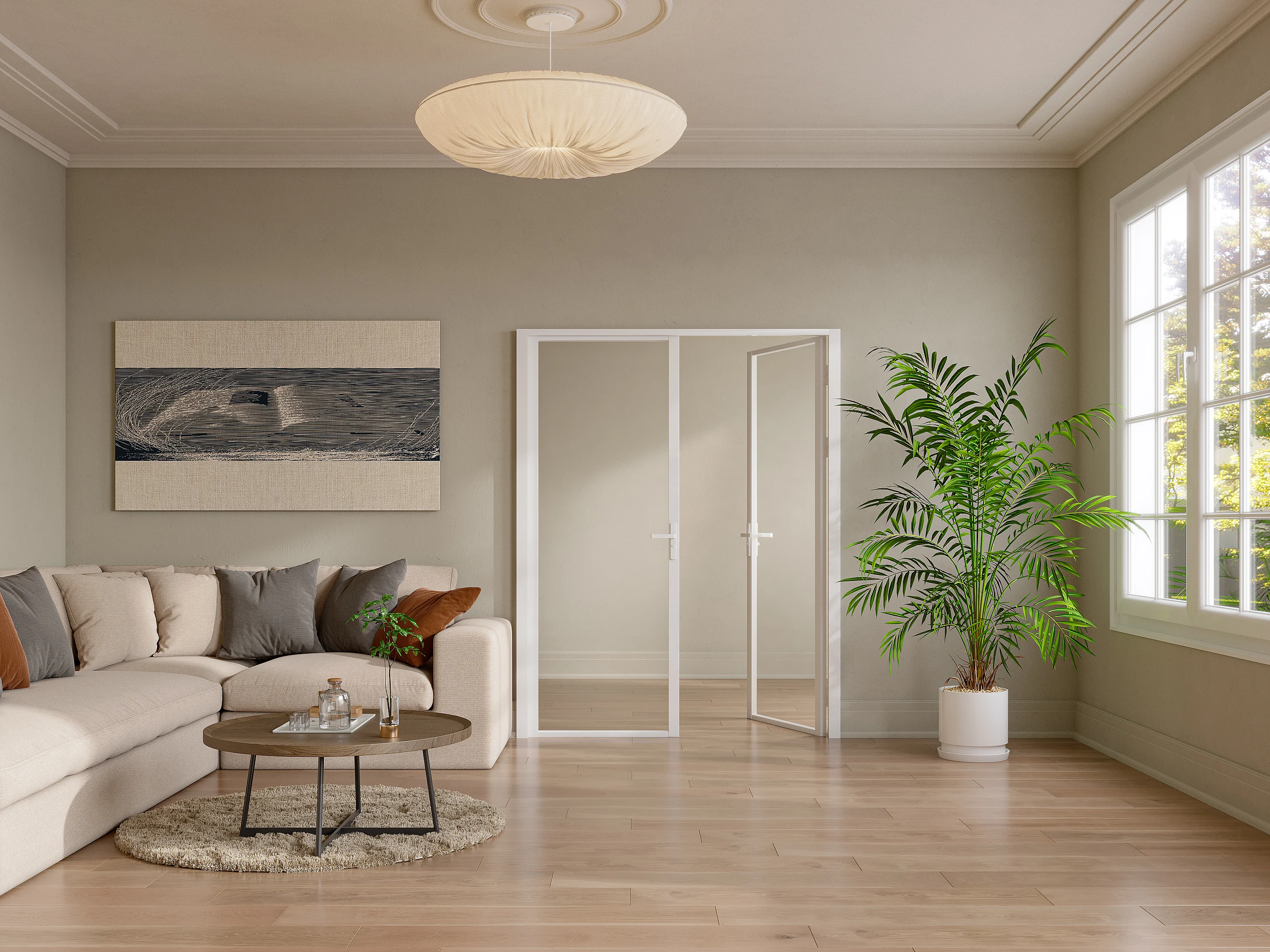 Tür-Set - zwei Flügel - wendbar - Aluminium & Sicherheitsglas - 2 x 204 x 73 cm - Weiß - LOXTON