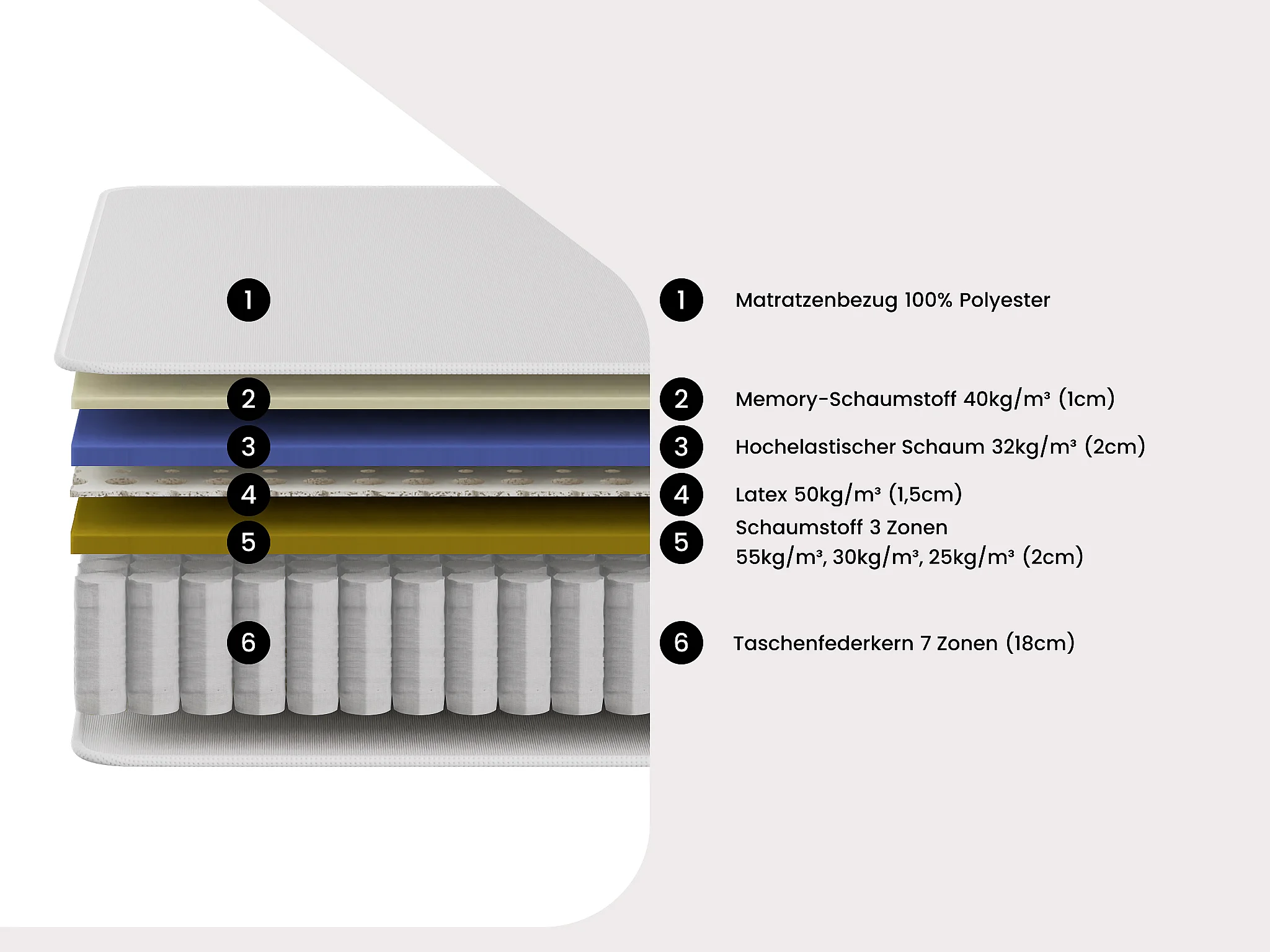 Bett-Set 160x200 cm - Bettkasten Natur hell + Hybrid-Matratze Taschenfederkern 7 Zonen + Memory + Latex - 25 cm - MALAO von PALACIO