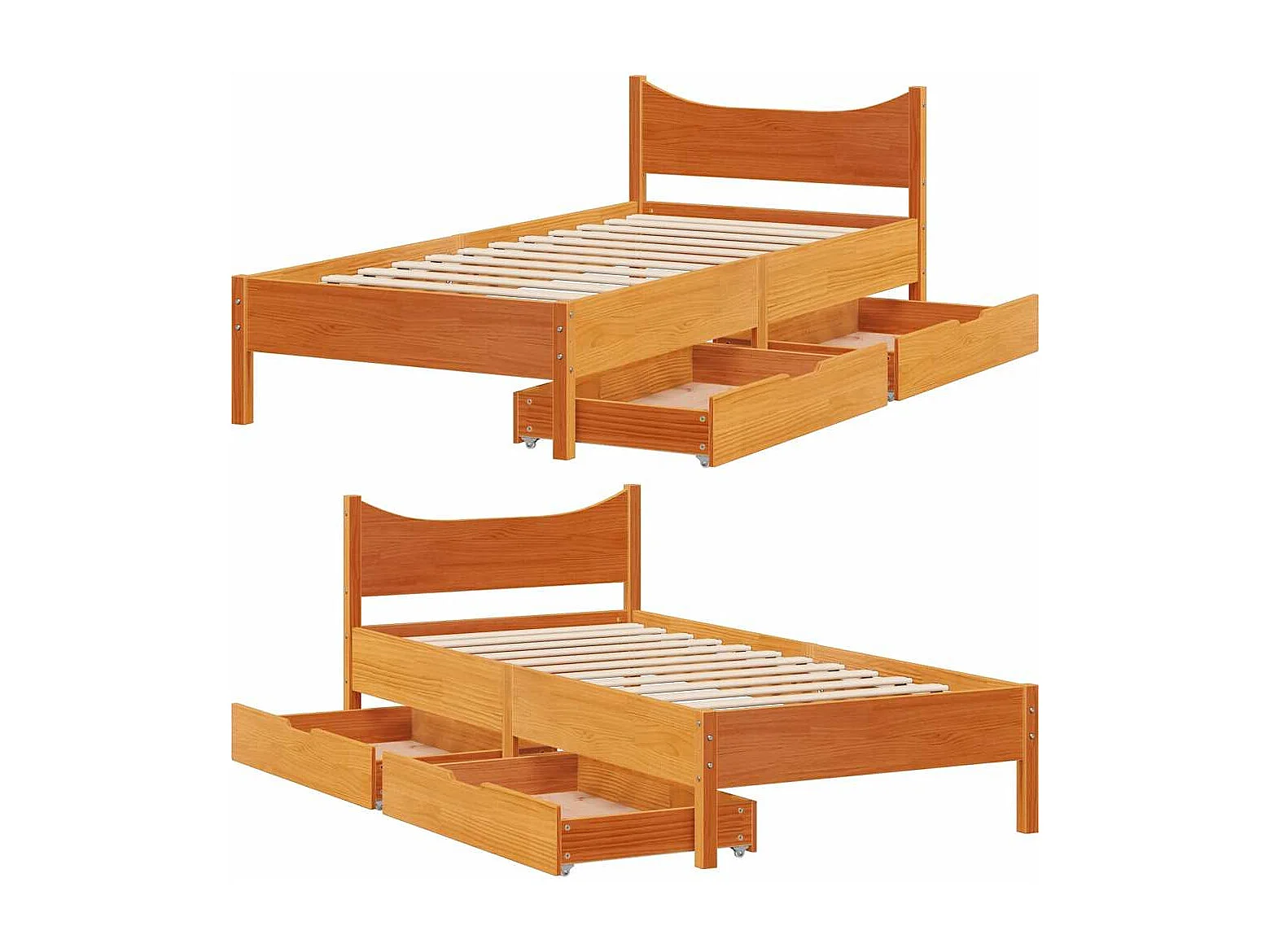 Massivholzbett mit Schubladen Wachsbraun 90x200 cm Kiefer