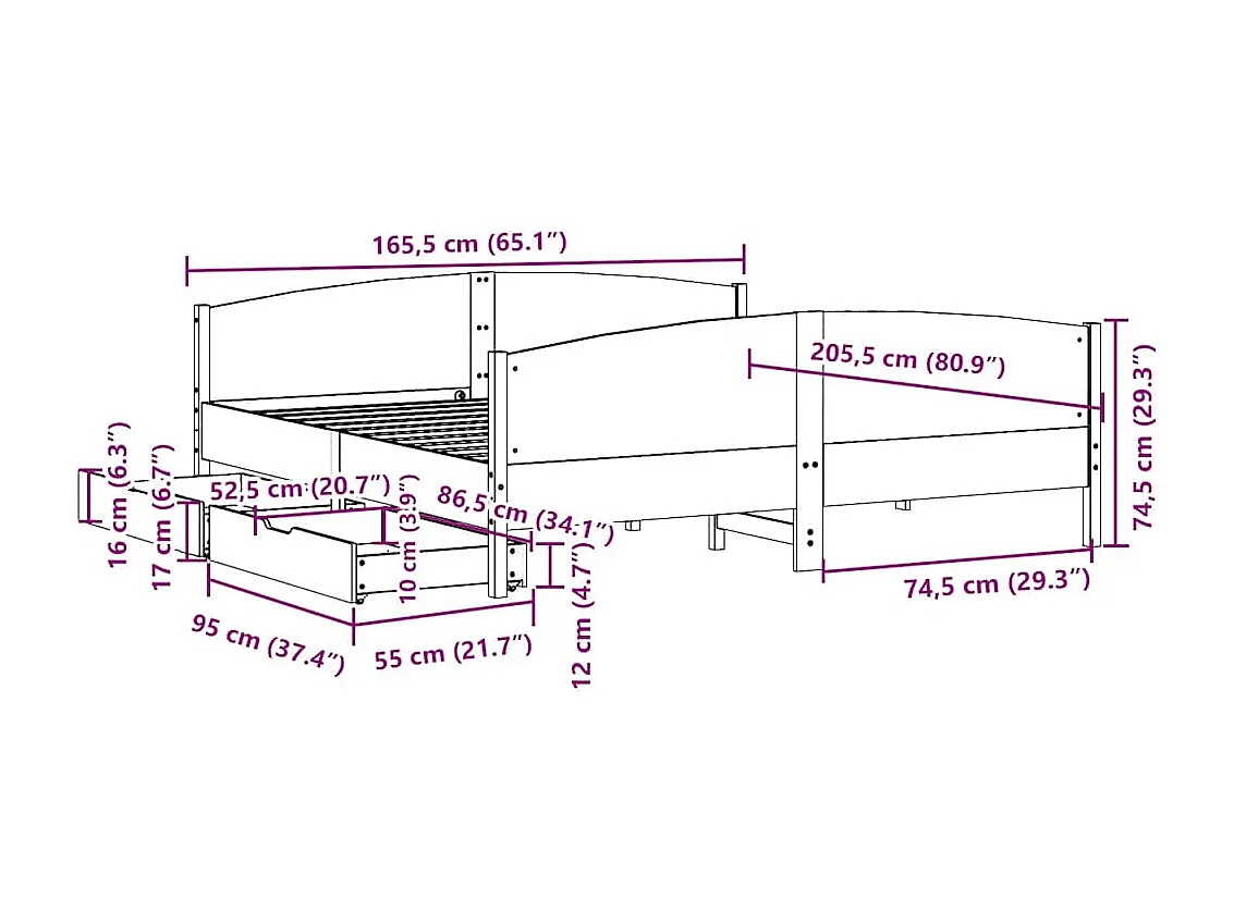 Massivholzbett ohne Matratze Wachsbraun 160x200 Kiefernholz