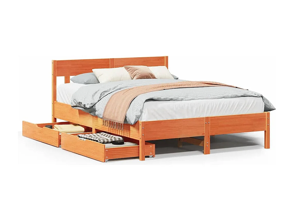 Massivholzbett ohne Matratze Wachsbraun 160x200 Kiefernholz