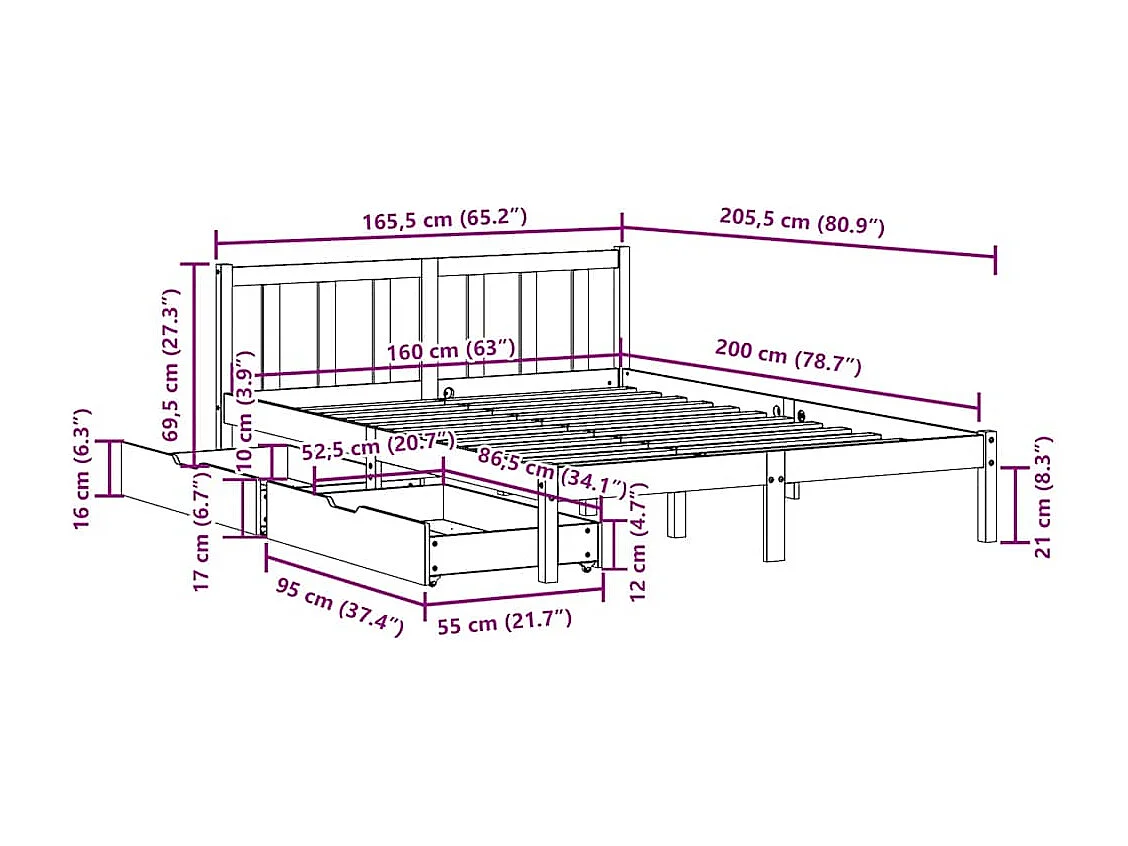 Massivholzbett ohne Matratze Wachsbraun 160x200 Kiefernholz