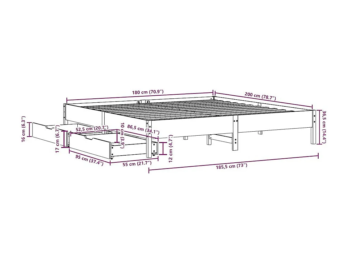 Massivholzbett ohne Matratze Wachsbraun 180x200 Kiefernholz