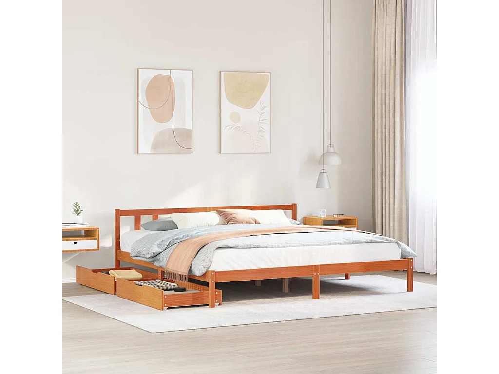 Massivholzbett ohne Matratze Wachsbraun 180x200 Kiefernholz