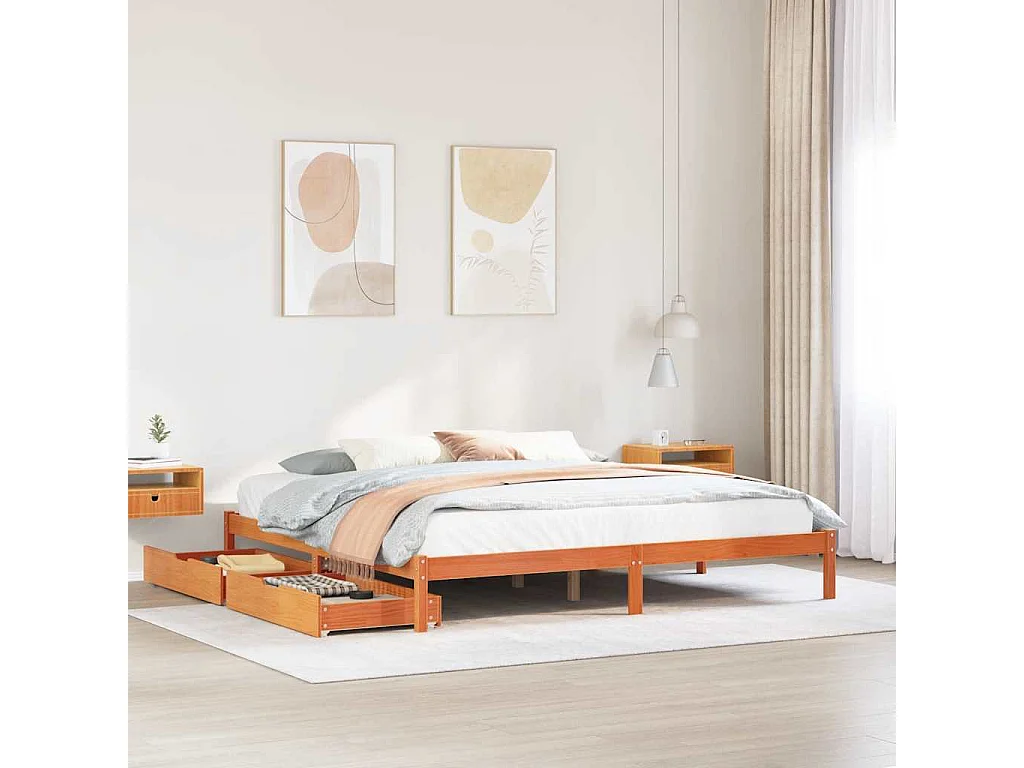 Massivholzbett ohne Matratze Wachsbraun 180x200 Kiefernholz