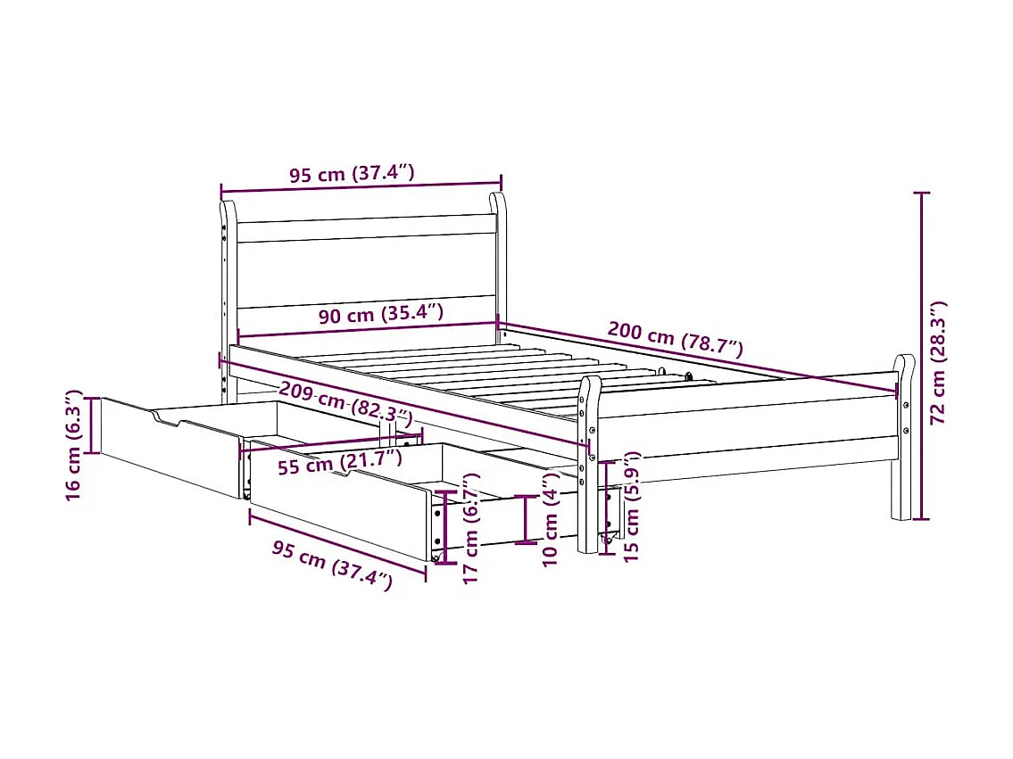 Massivholzbett ohne Matratze Wachsbraun 90x200 Kiefernholz