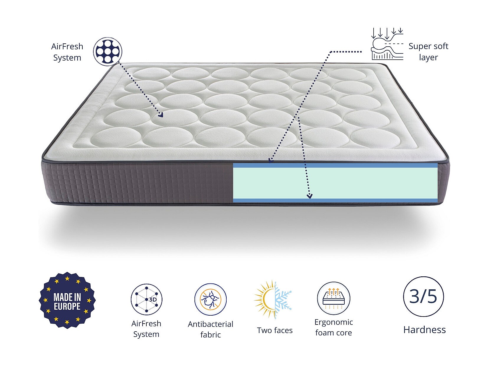 Matratze 200x200 CAELUM Hohe 24 CM Schaumstoff mit hoher Dichte H3