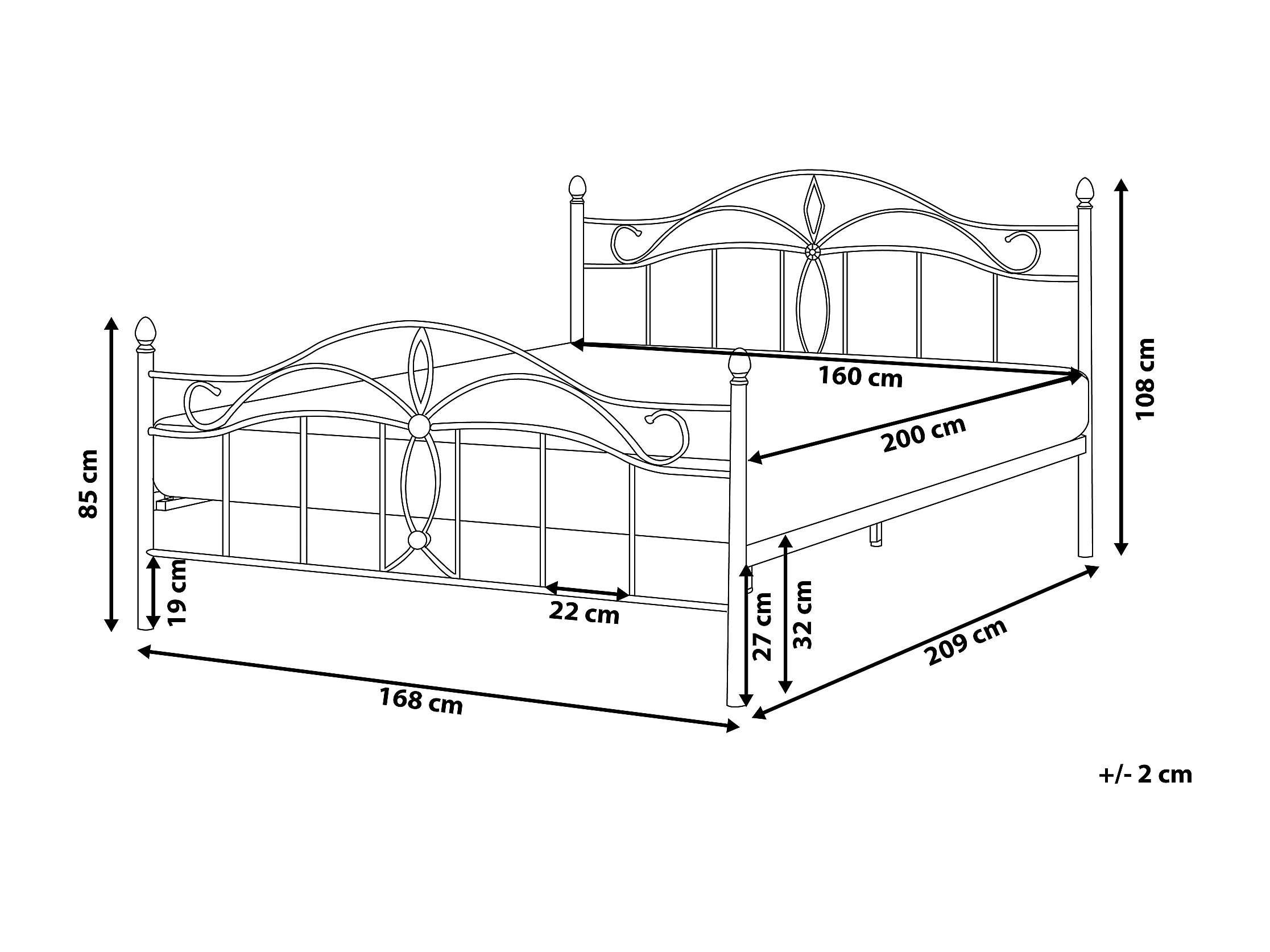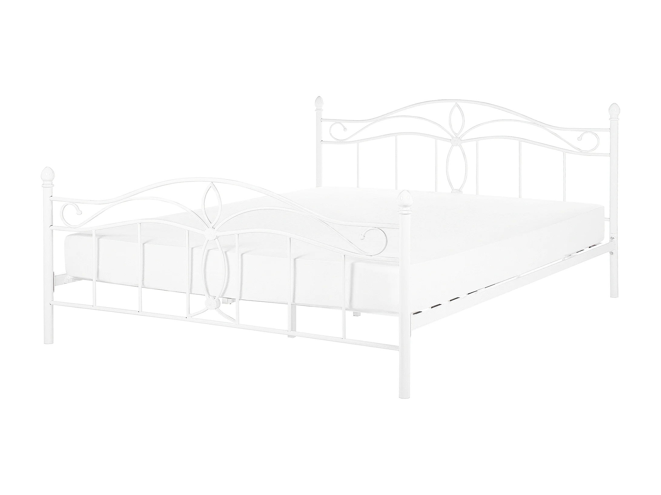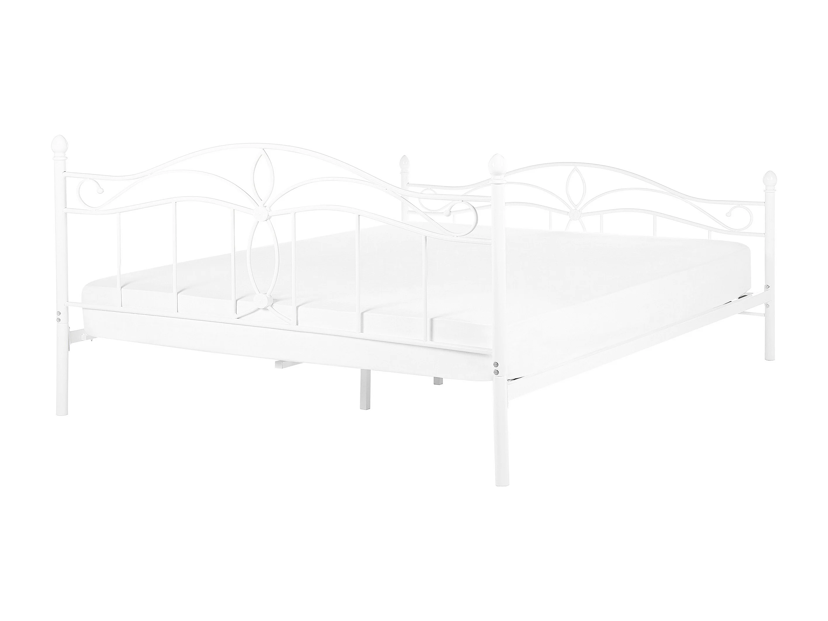 Romantisches Doppelbett Weiß Metall mit Kopfteil Lattenrost 160x200 cm Antlia