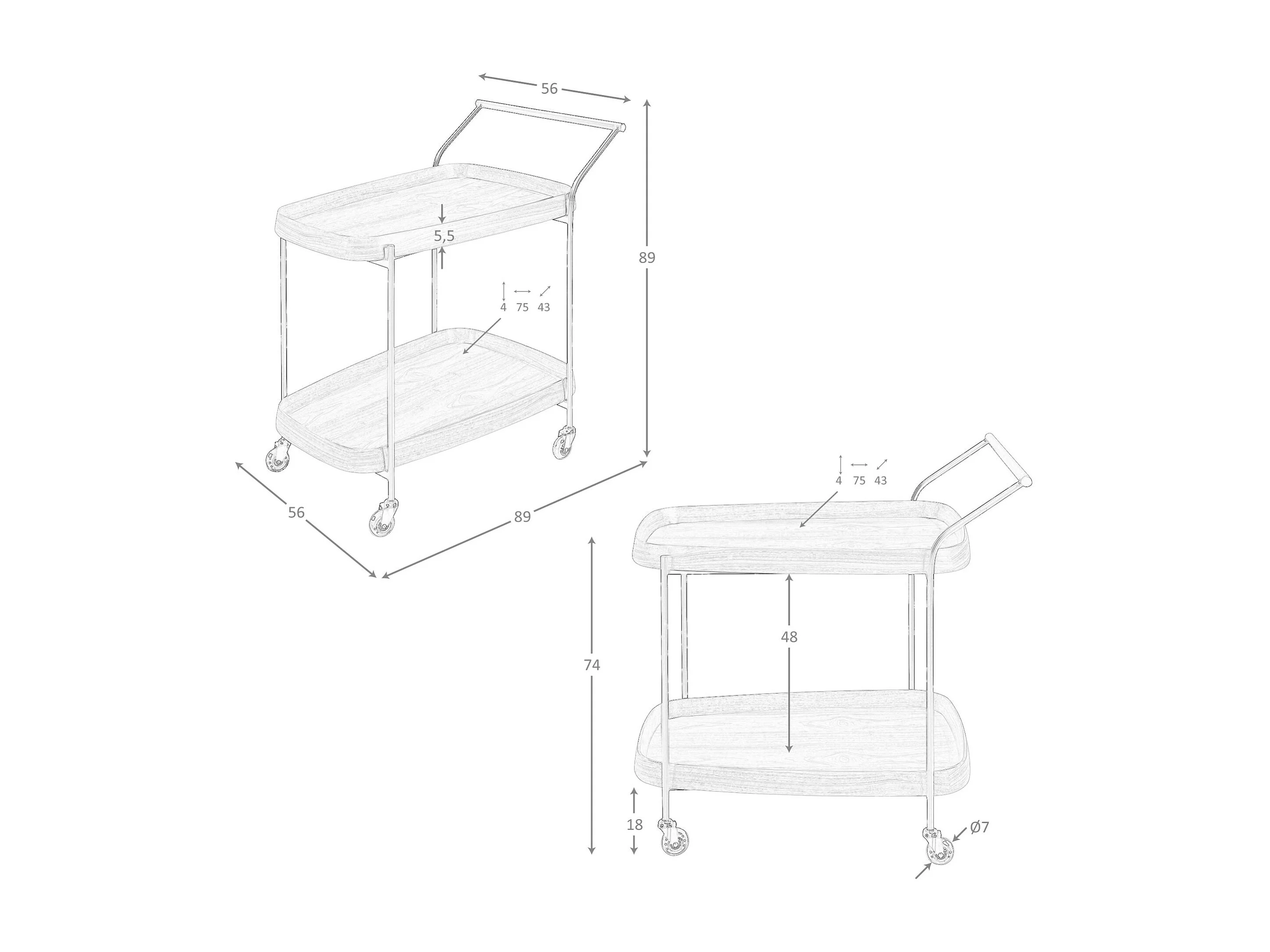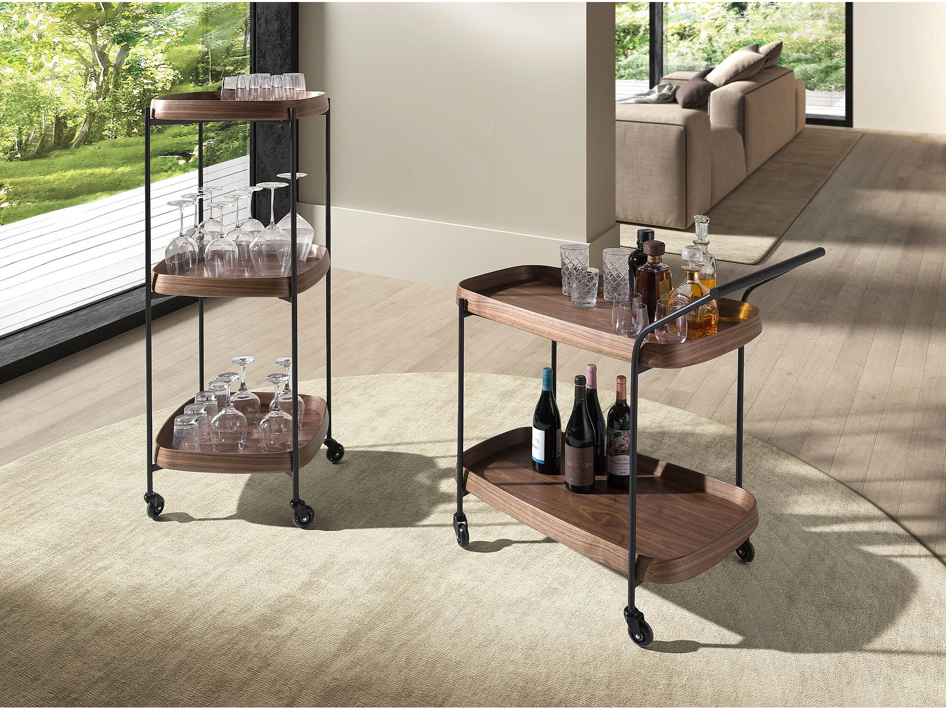 Minibar-Servierwagen aus Nussbaumholz und schwarzem Stahl 3290 ANGEL CERDA