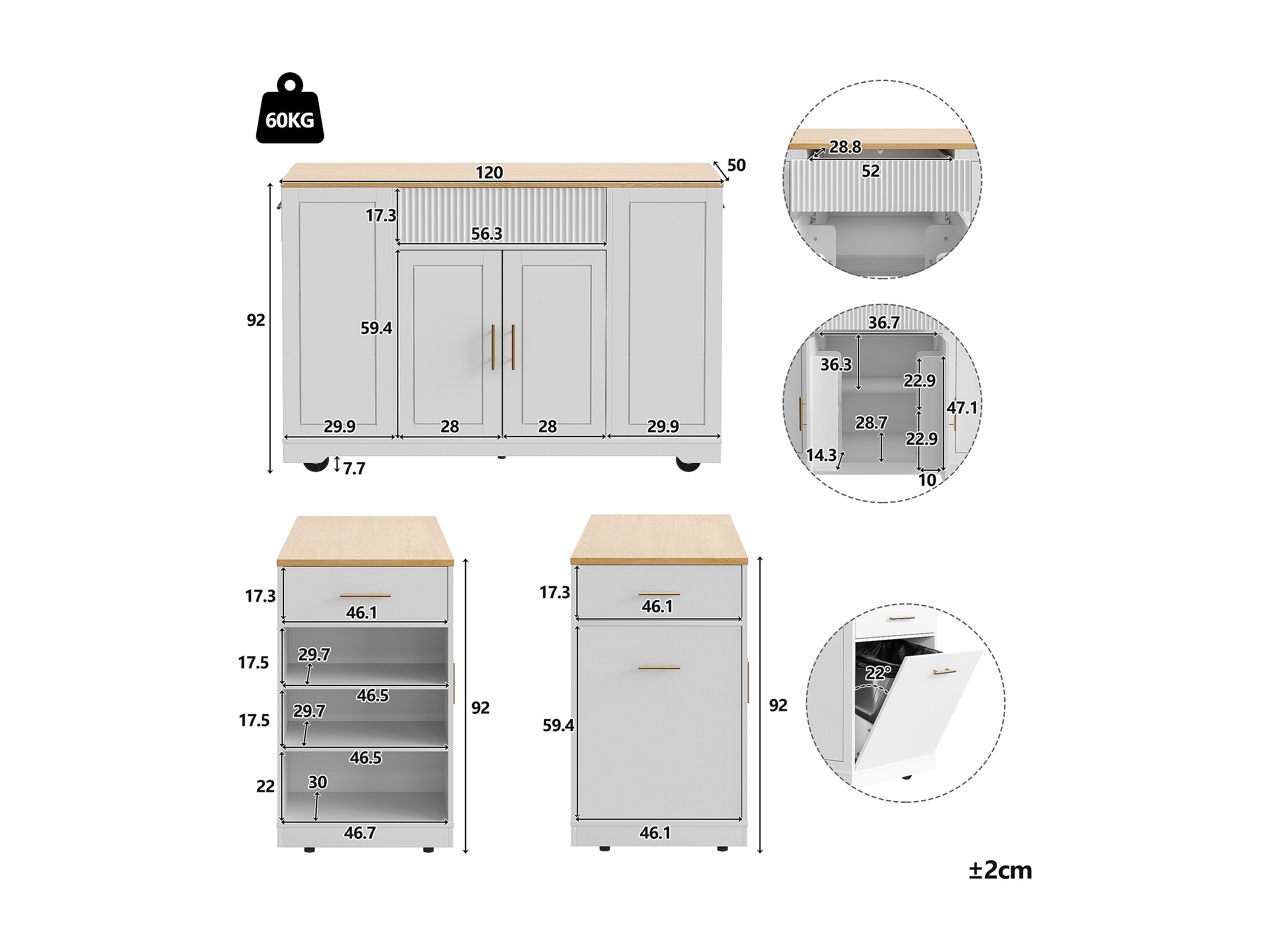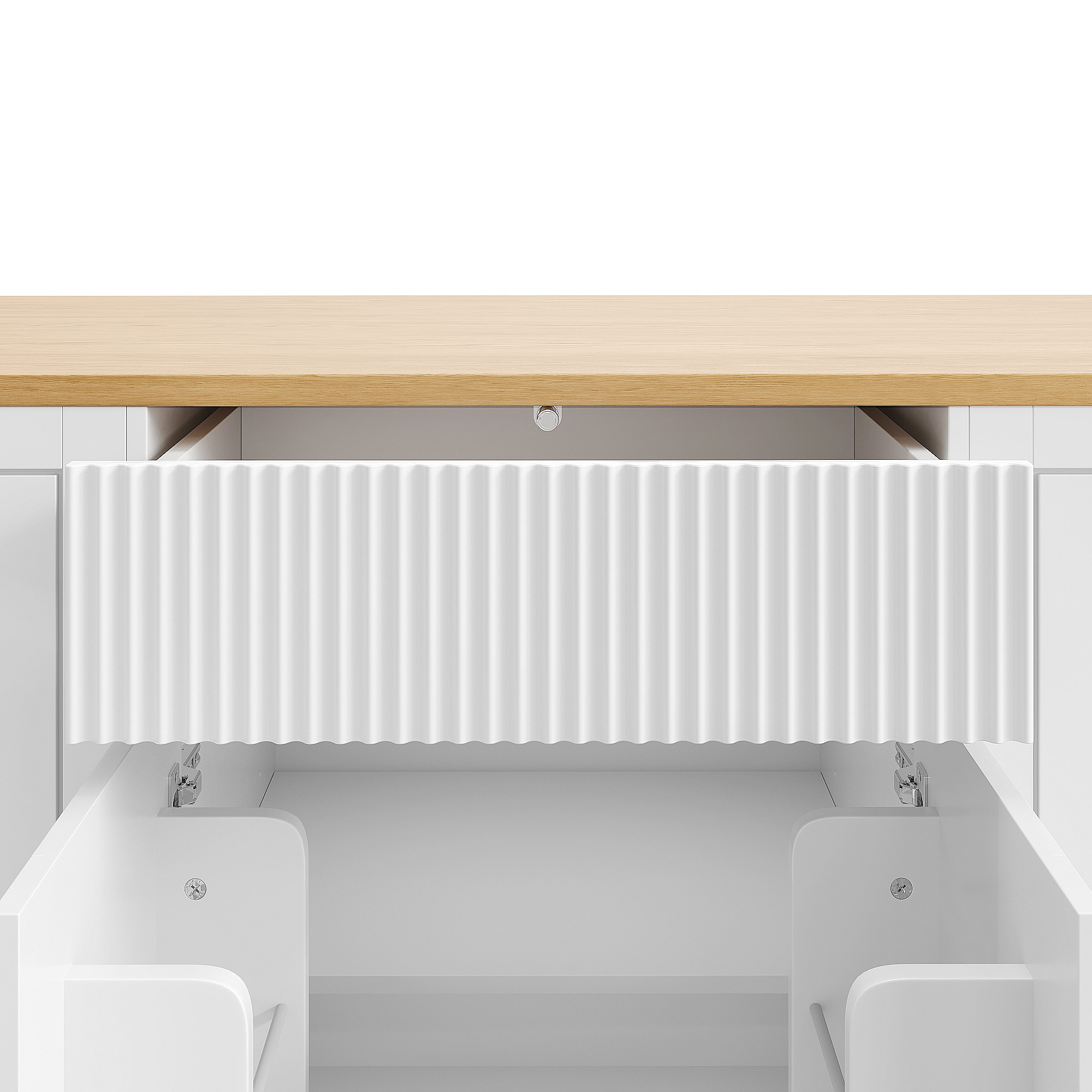Mobile Kücheninsel - 3 Türen und 2 Schubladen - Offene Ablagefächer - Mit Mülltrennfach - MDF - Weiß