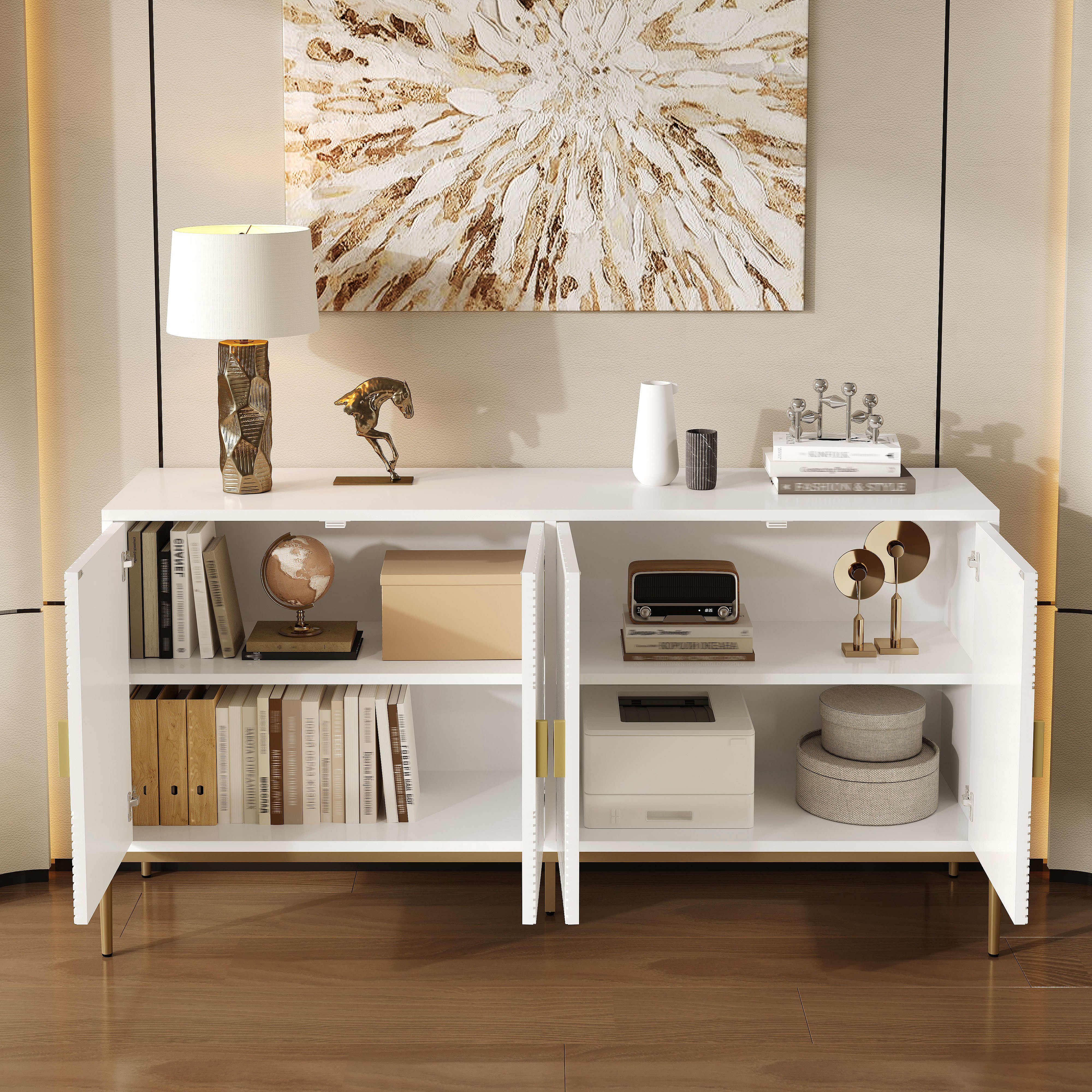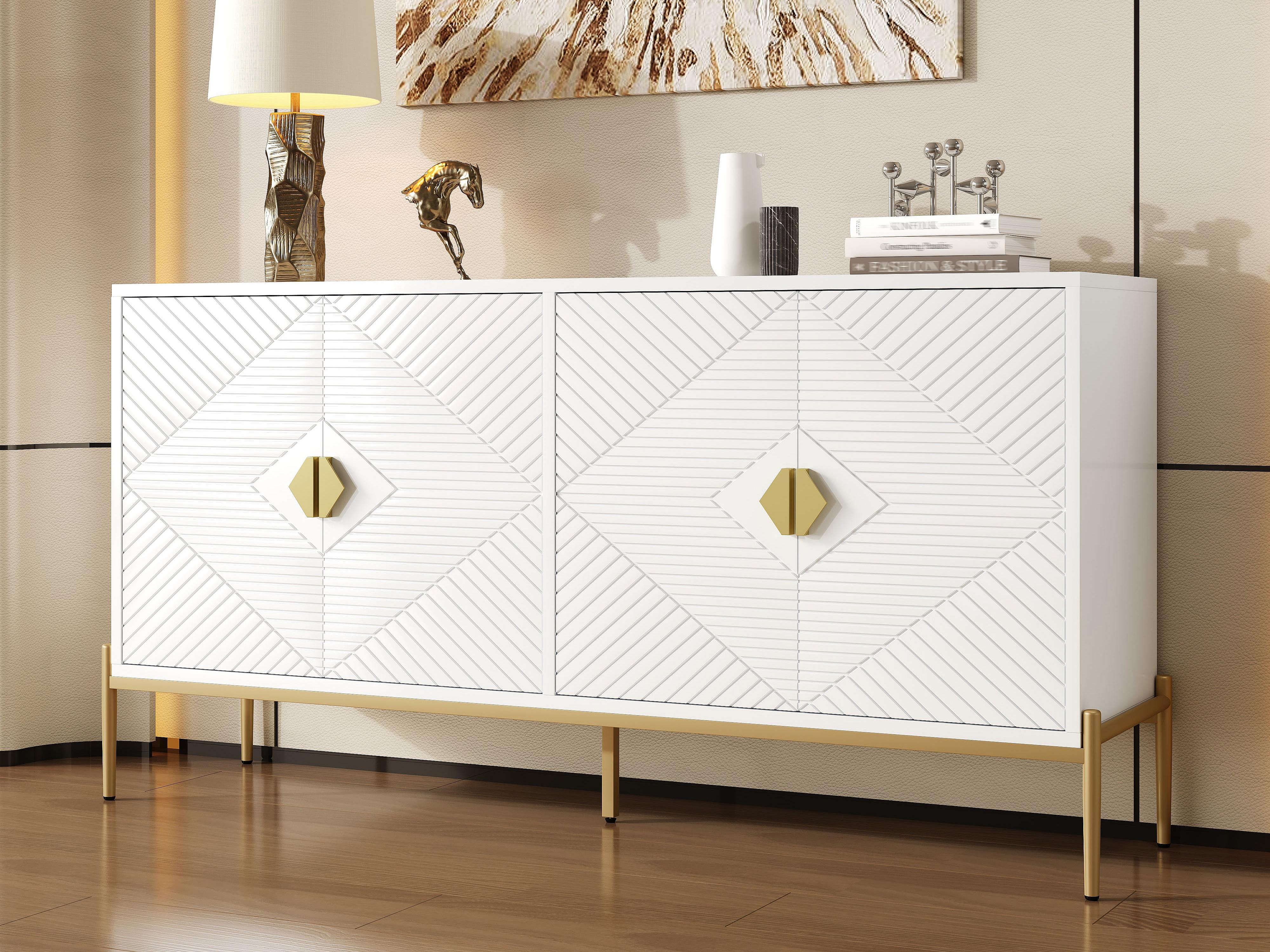 Buffet 140x40x80cm - 4 Türen - mit verstellbaren Regalen - Weiß + Gold