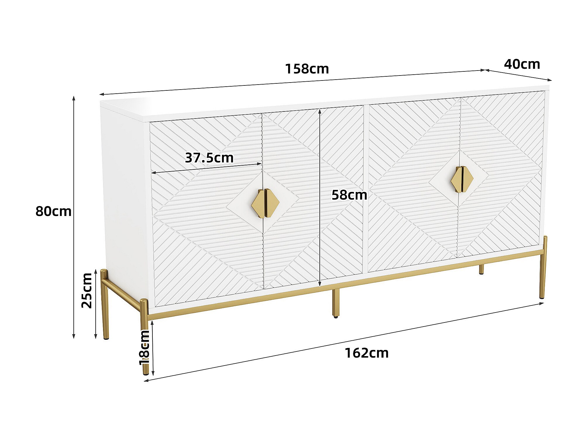 Moderne Anrichte 162x40x80 cm - mit 4 Türen - Metallfüße - MDF + Spanplatten - Weiß