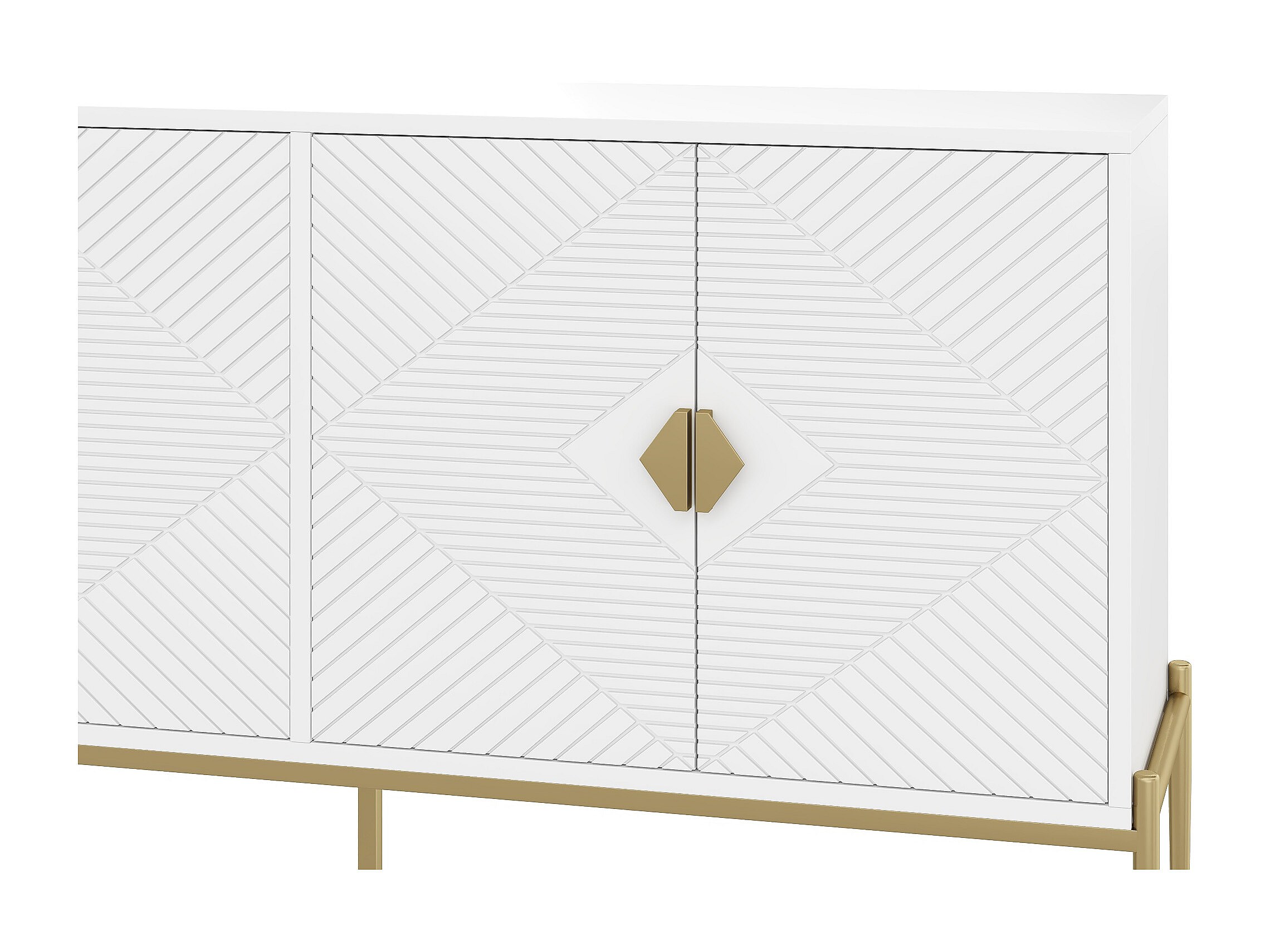 Hochglanz-Buffet 140x40x80 cm - mit 4 Türen - Metallgriffe und -füße - weiß