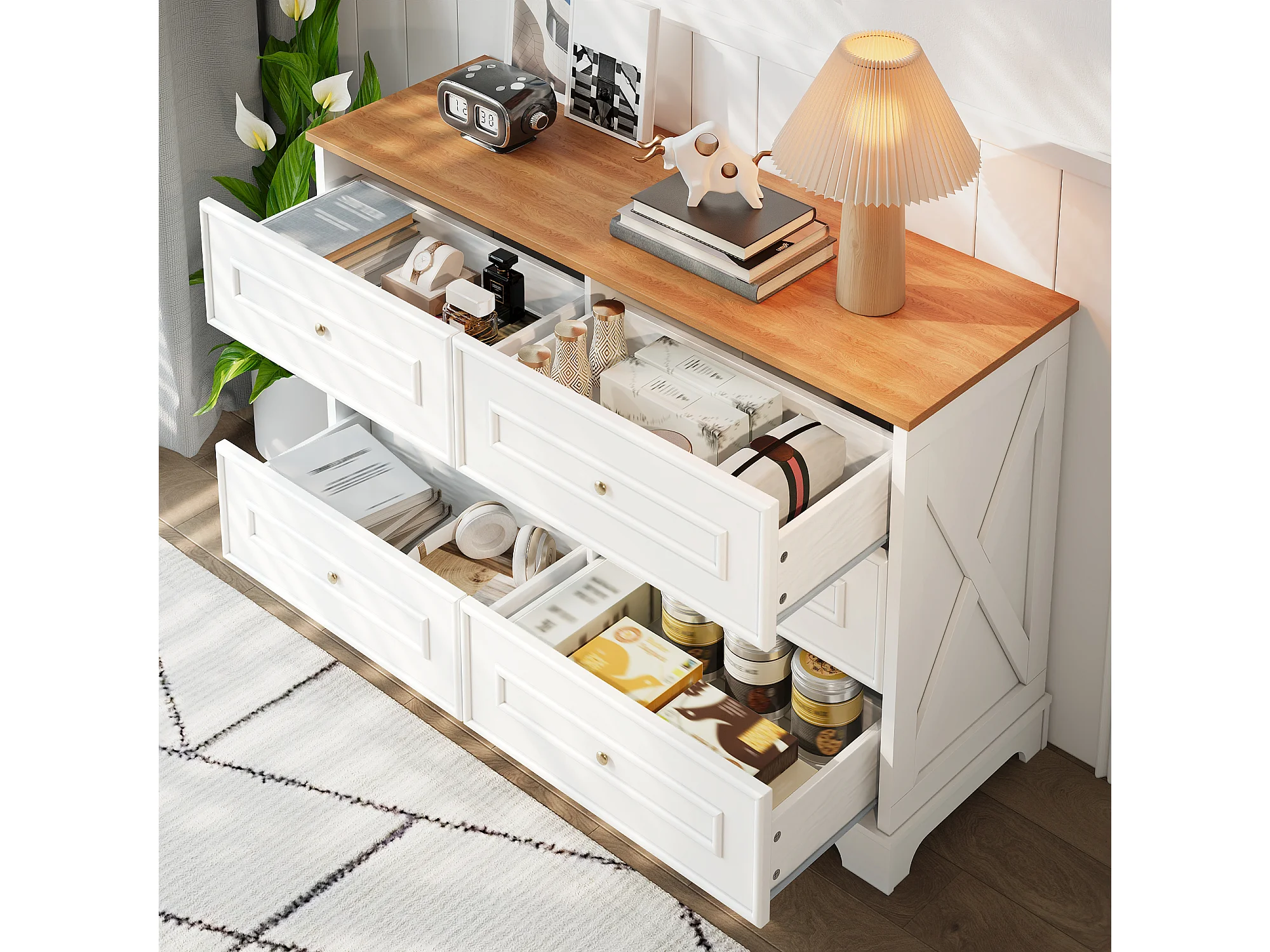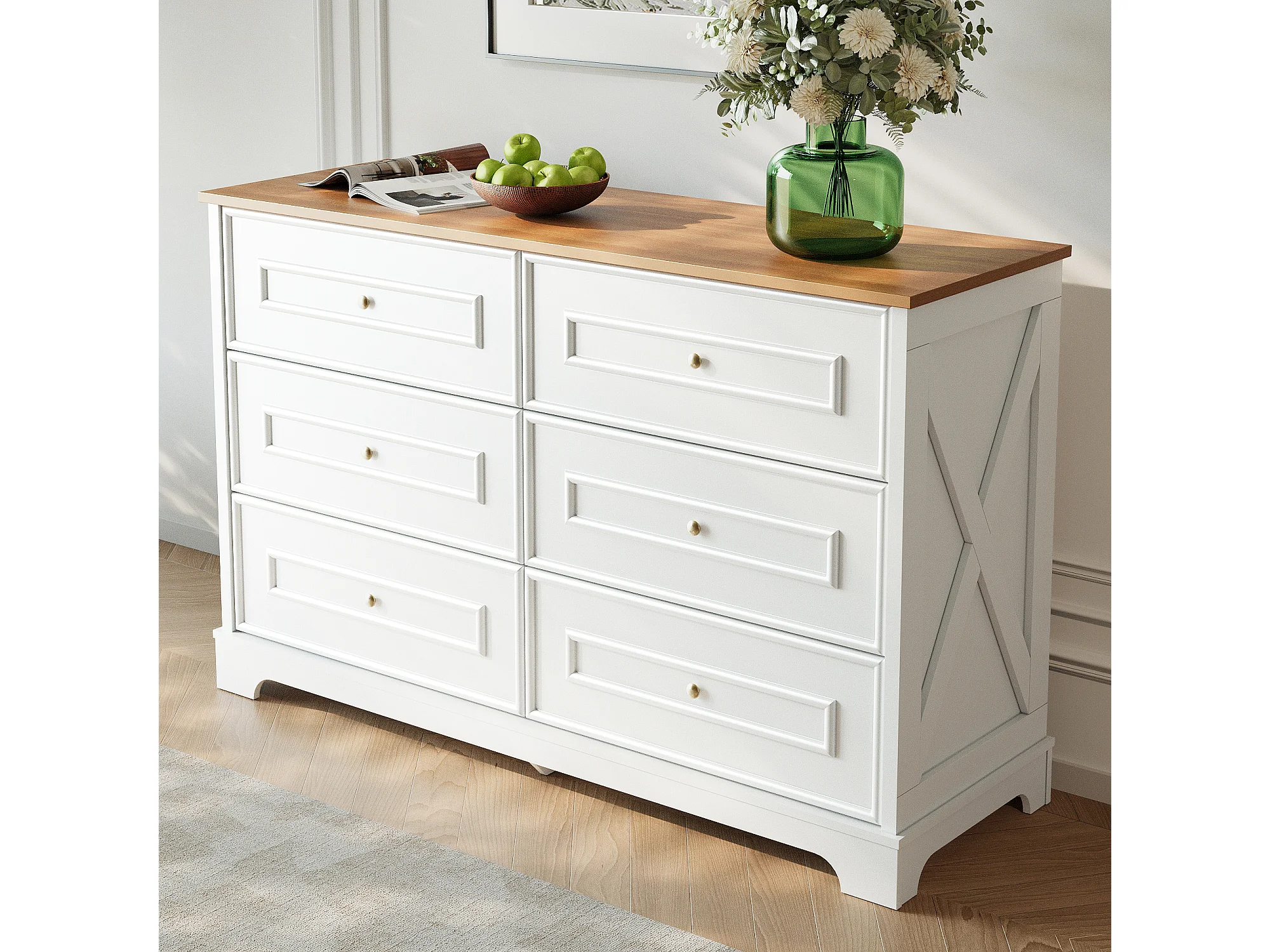 Moderne Kommode mit 6 Schubladen – 120 x 40 x 76 cm – für Wohnzimmer, Esszimmer und Eingangsbereich – MDF und Spanplatte – weiß