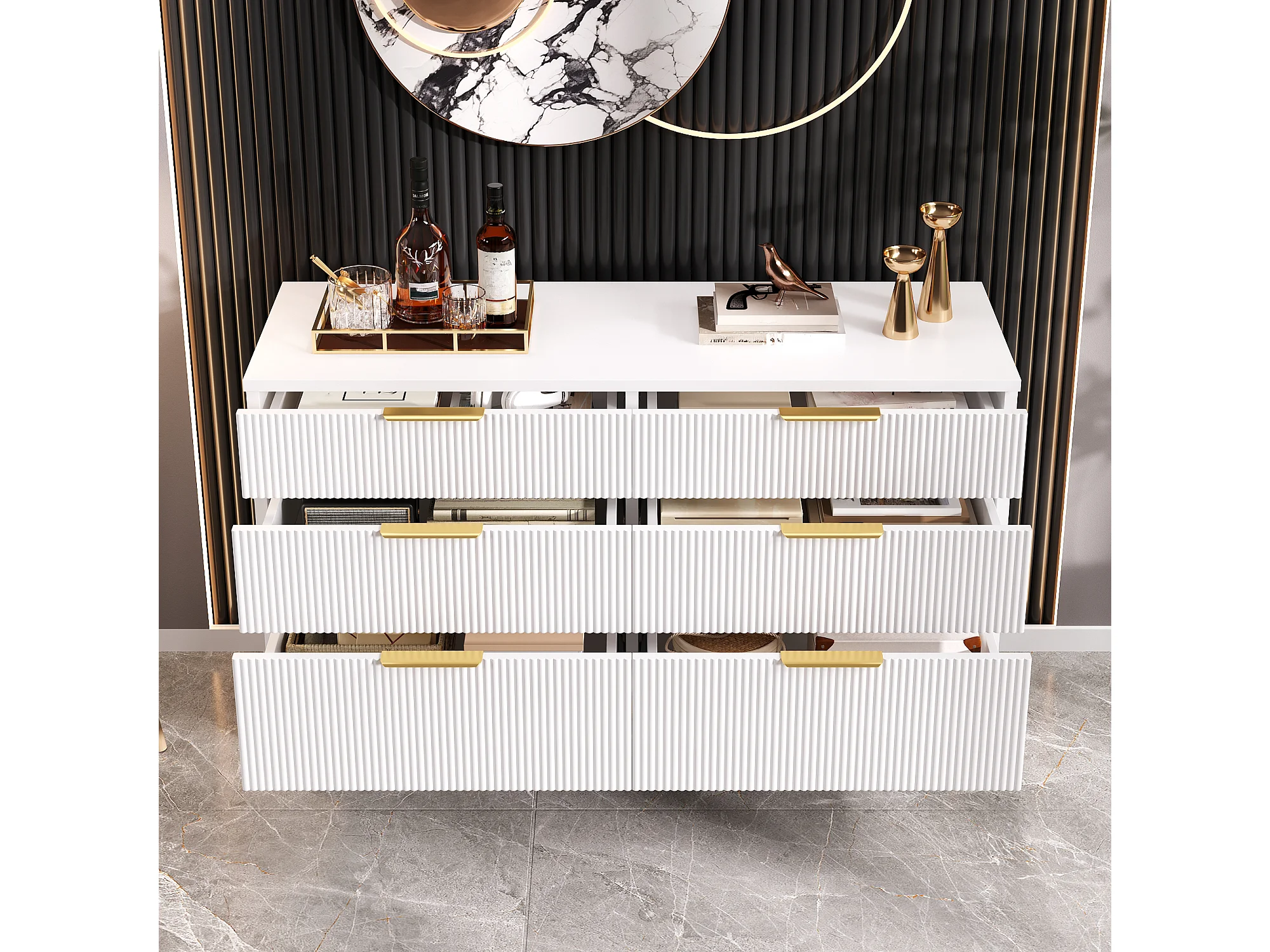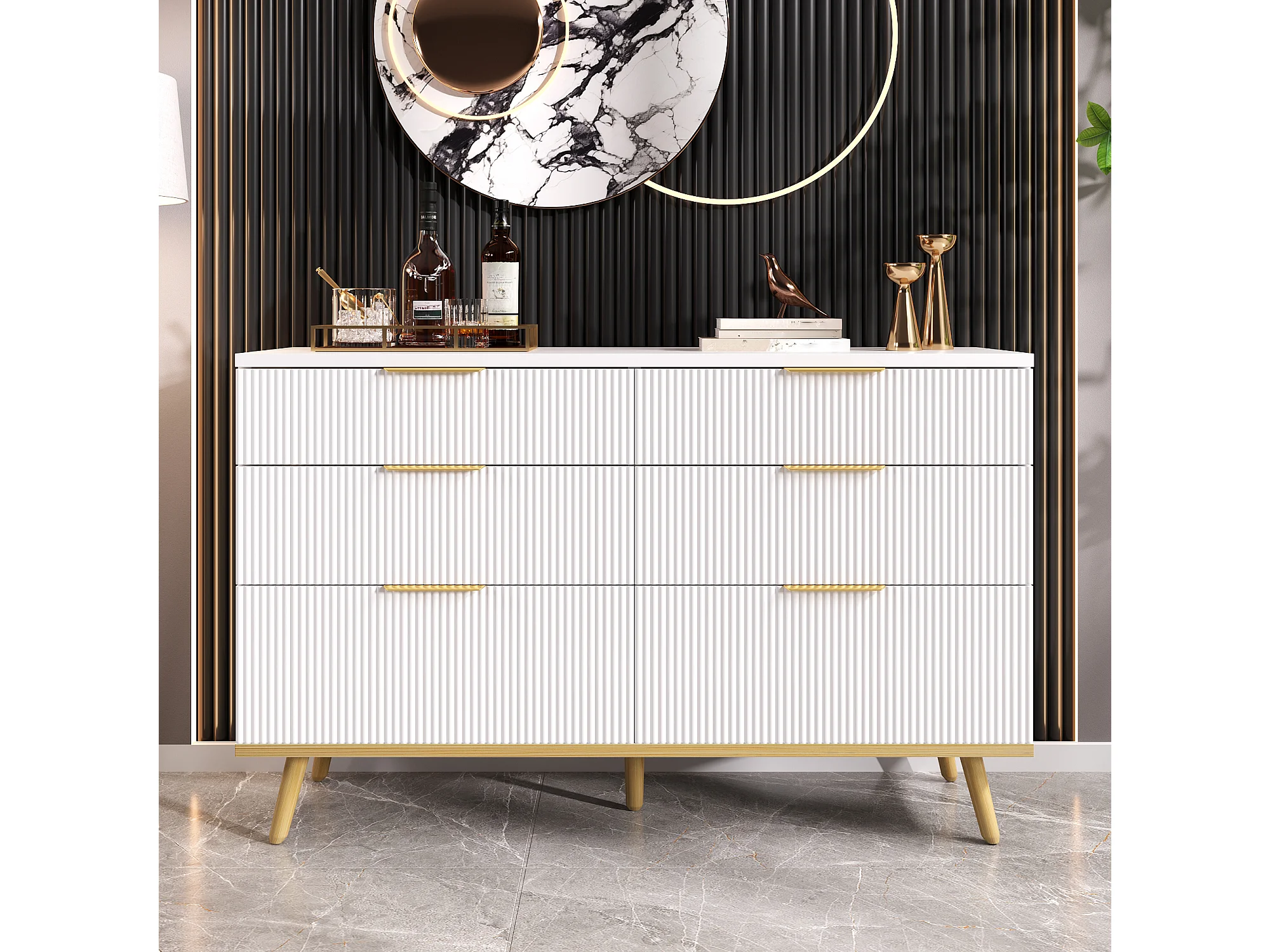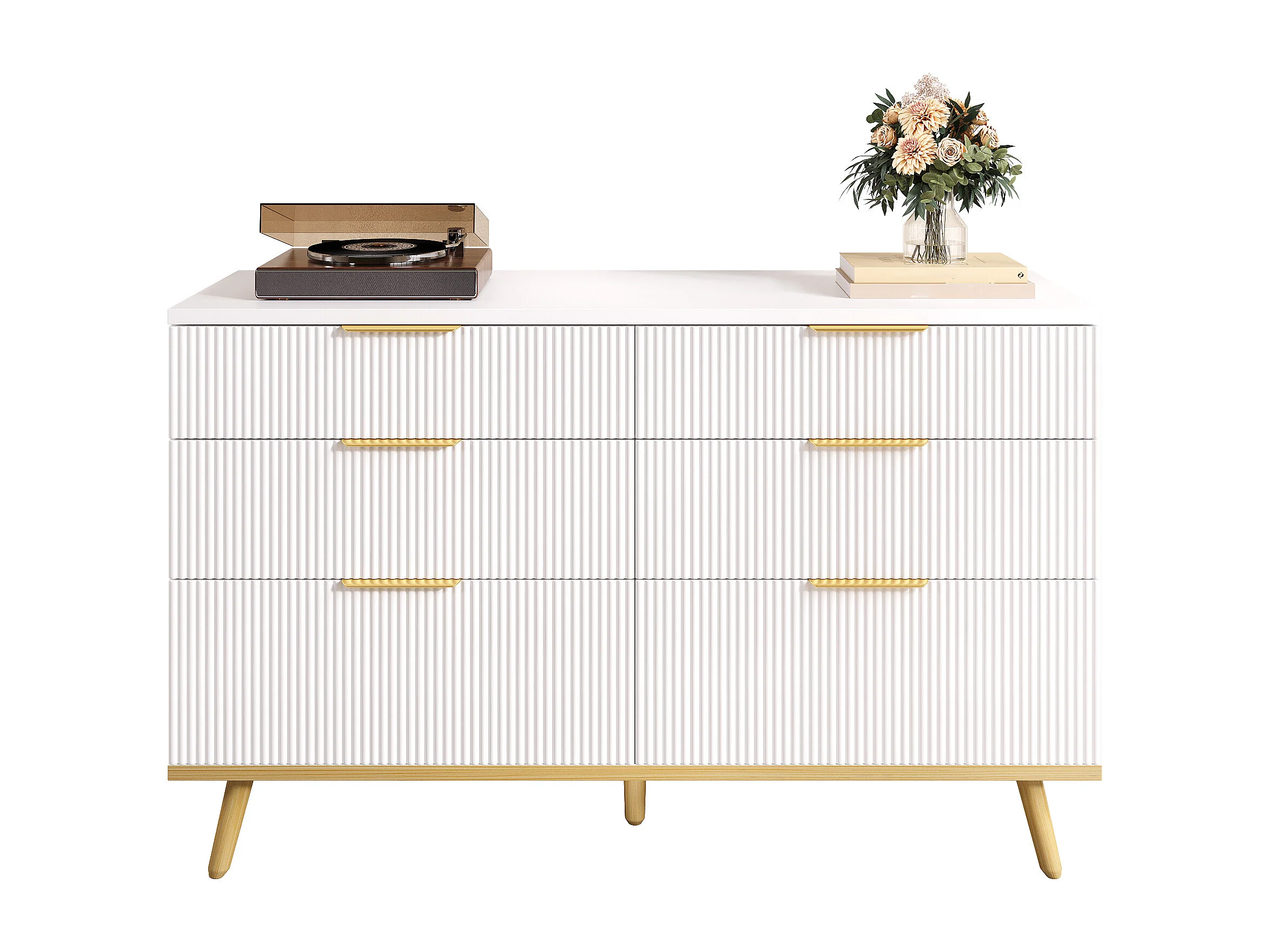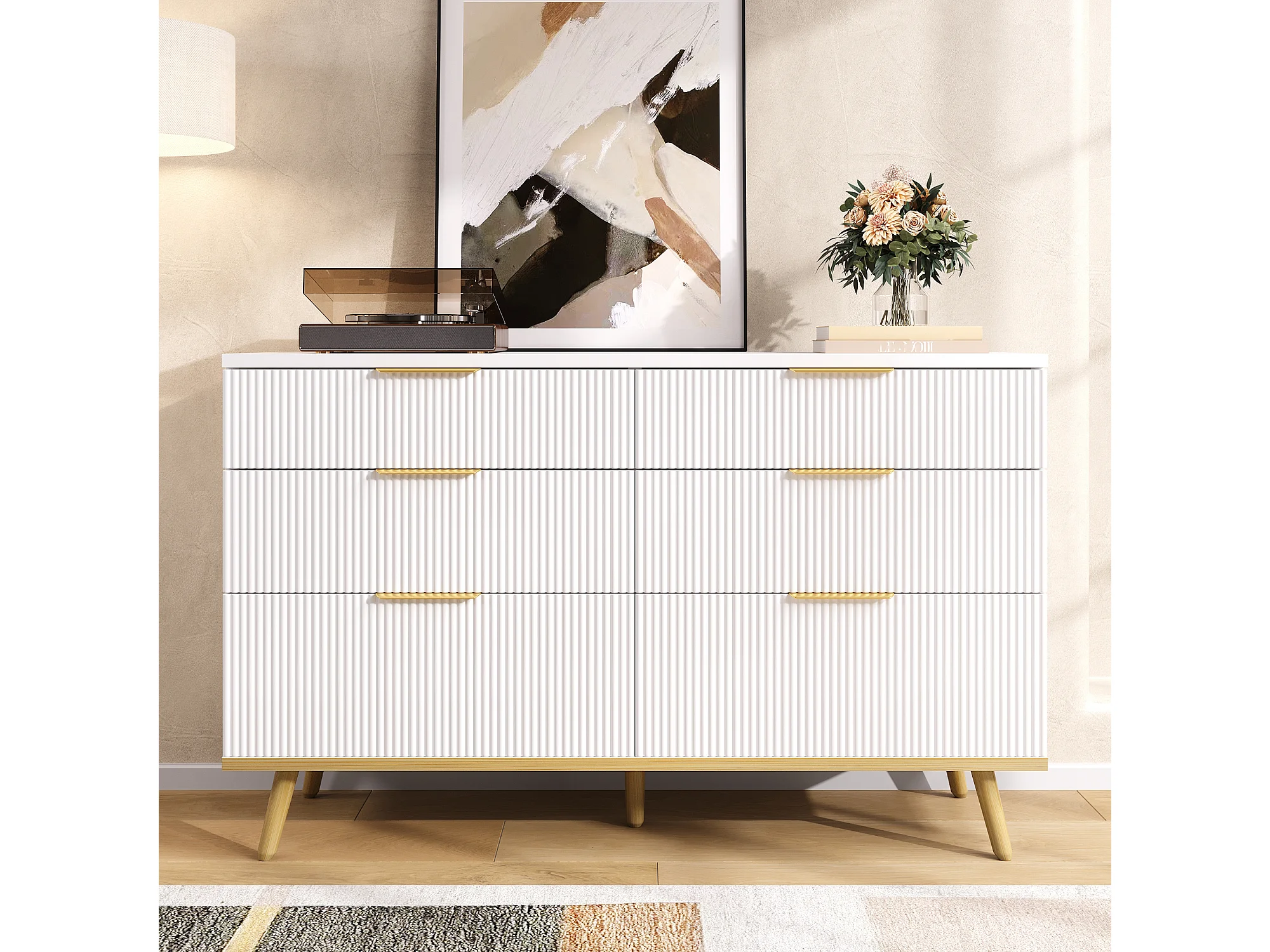 Moderne Kommode mit 6 Schubladen und Beinen in Holzoptik – 120 x 40 x 76,5 cm – für Wohnzimmer/Schlafzimmer/Flur – Spanplatte – weiß