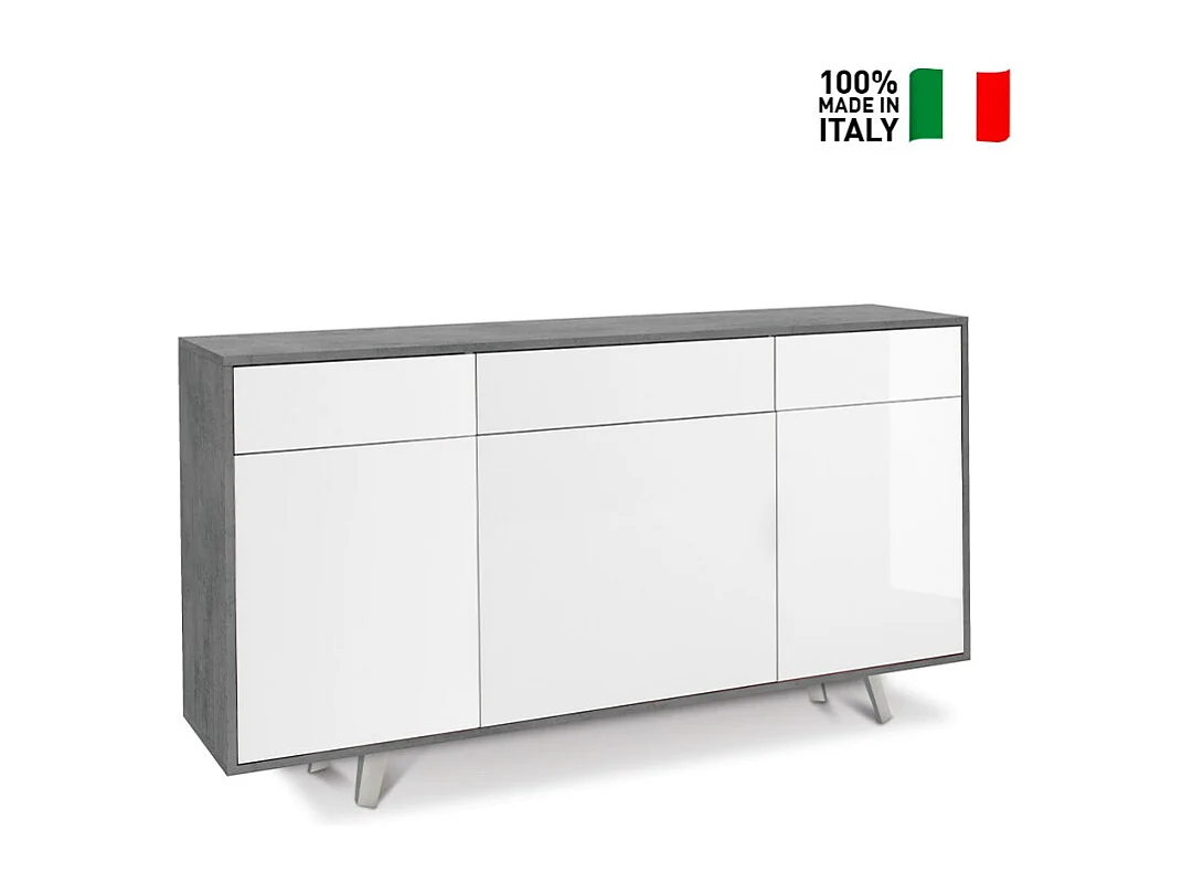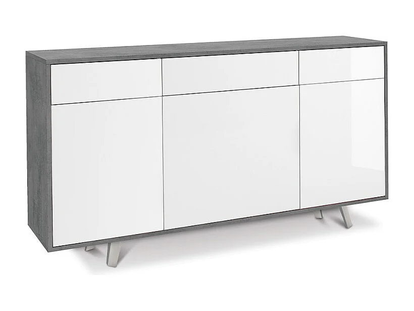 Moderne Küchenschrank Valdi mit 3 Türen und 3 Schubladen für das Wohnzimmer - Grau - Weiß