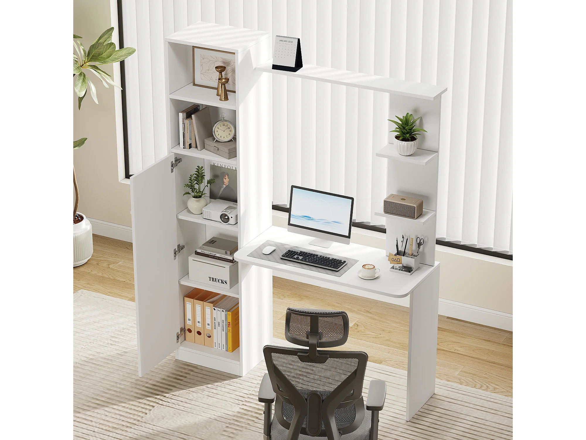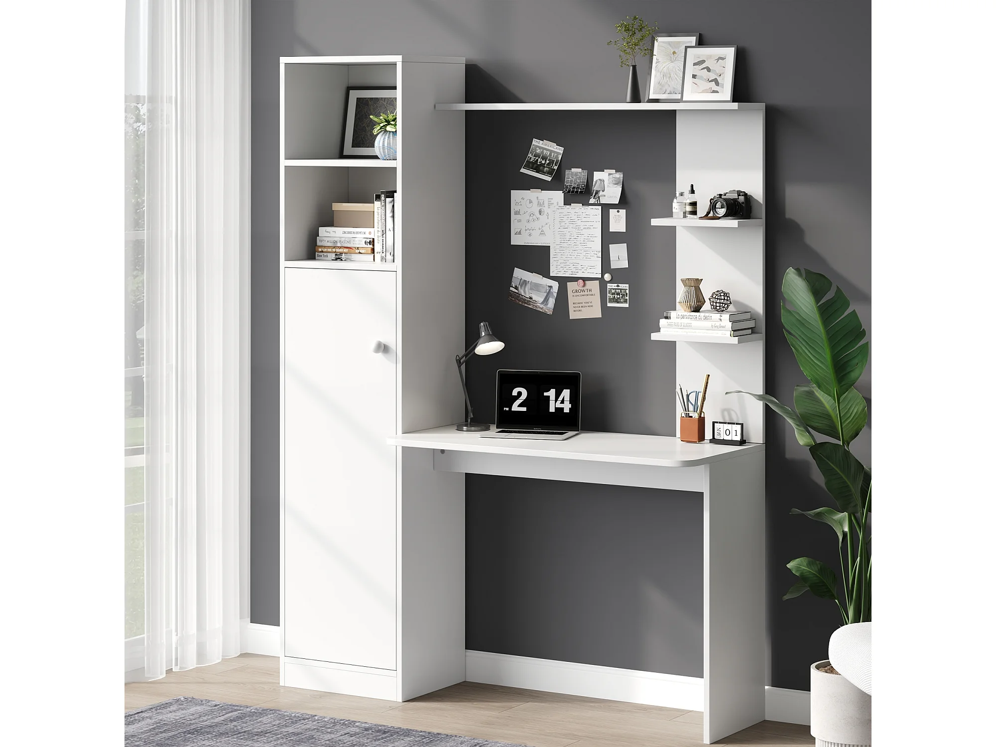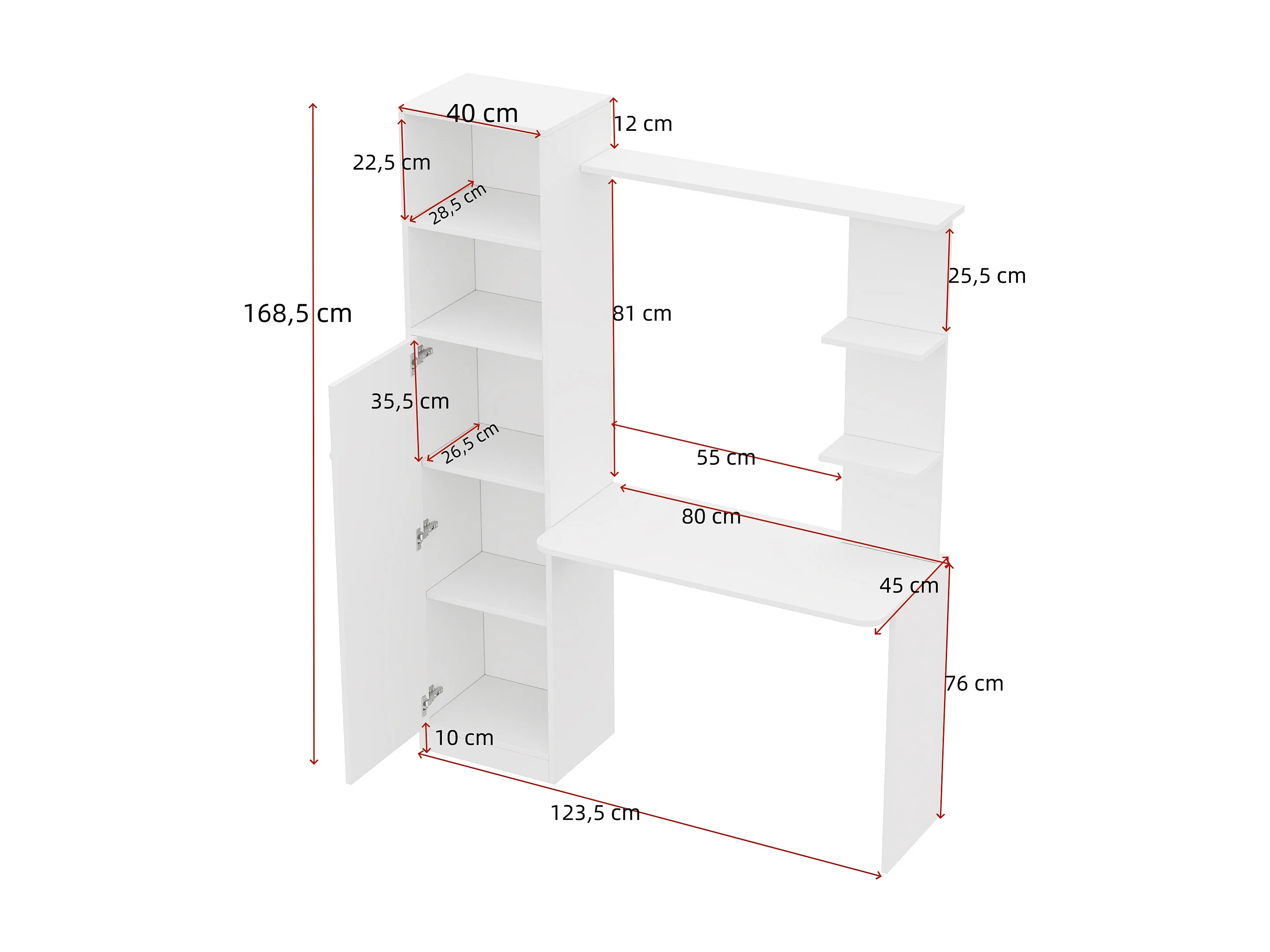 Moderner Design-Schreibtisch – 123,5 x 45 x 168,5 cm – mit Schrank und Ablagefach – MDF – weiß
