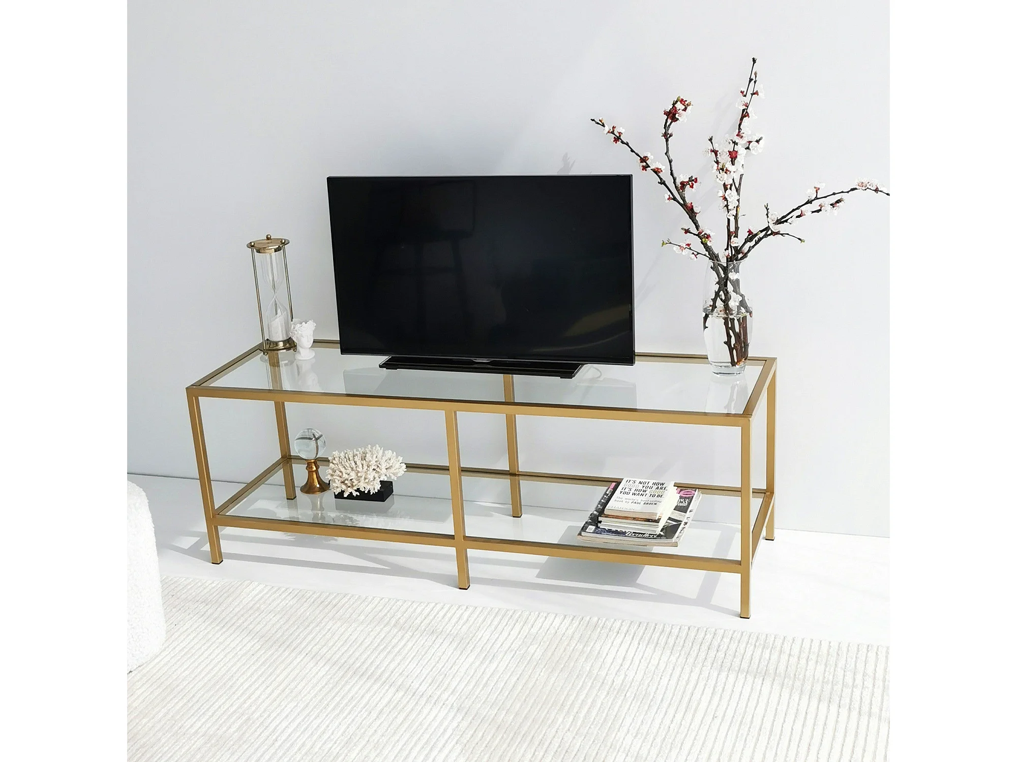 Moderner Metall- und Glastisch für Fernseher, 130 cm, Goldy