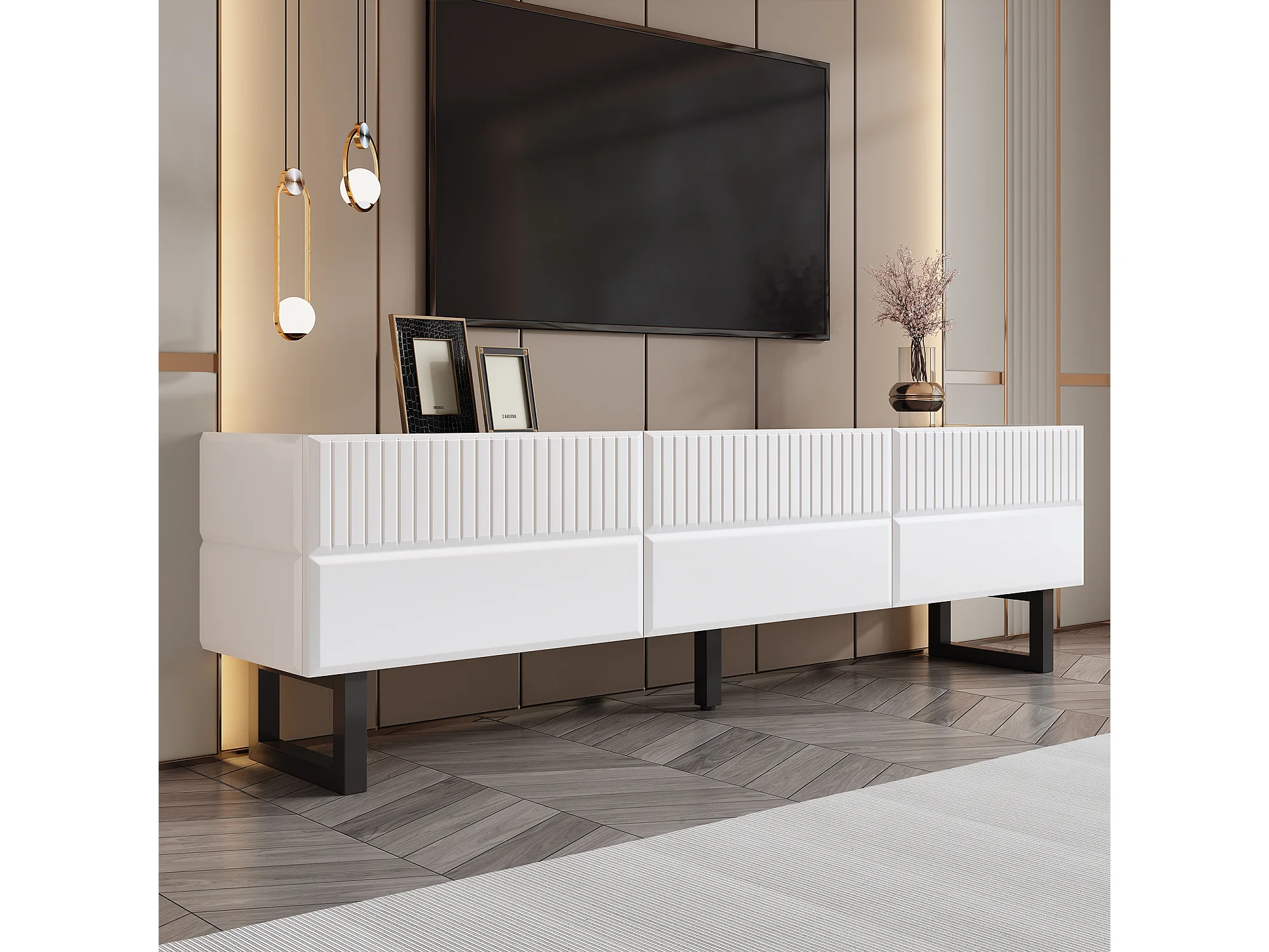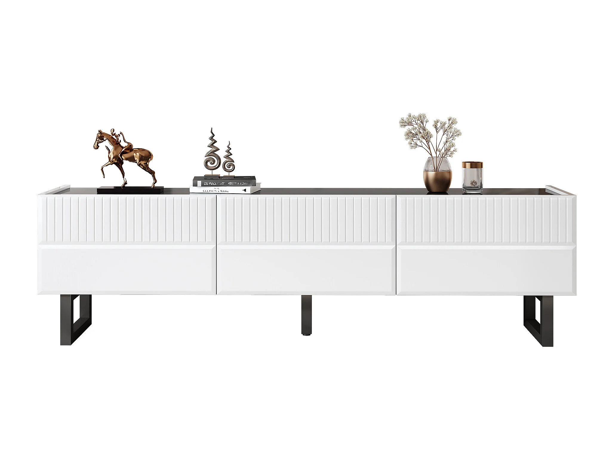 Moderner, niedriger TV-Ständer – 170 x 35 x 47 cm – mit 3 Schubladen – Klassisches Design – MDF – schwarz-weiß