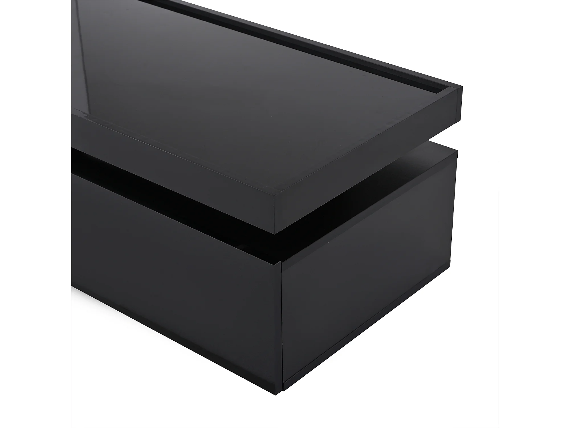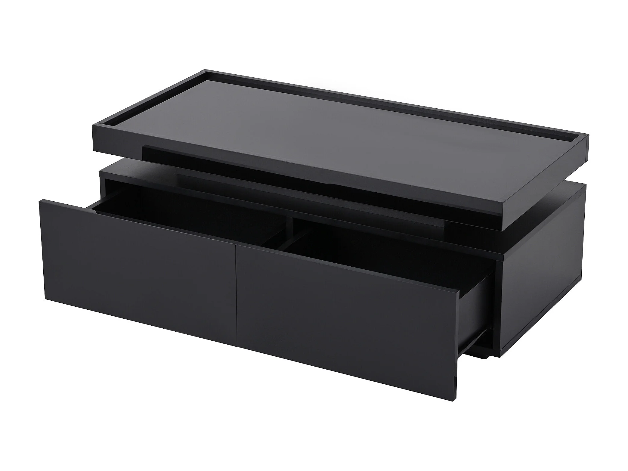 Moderner rechteckiger Couchtisch – Couchtisch mit 2 Schubladen und LED-Beleuchtung – glänzende Platte – schwarz