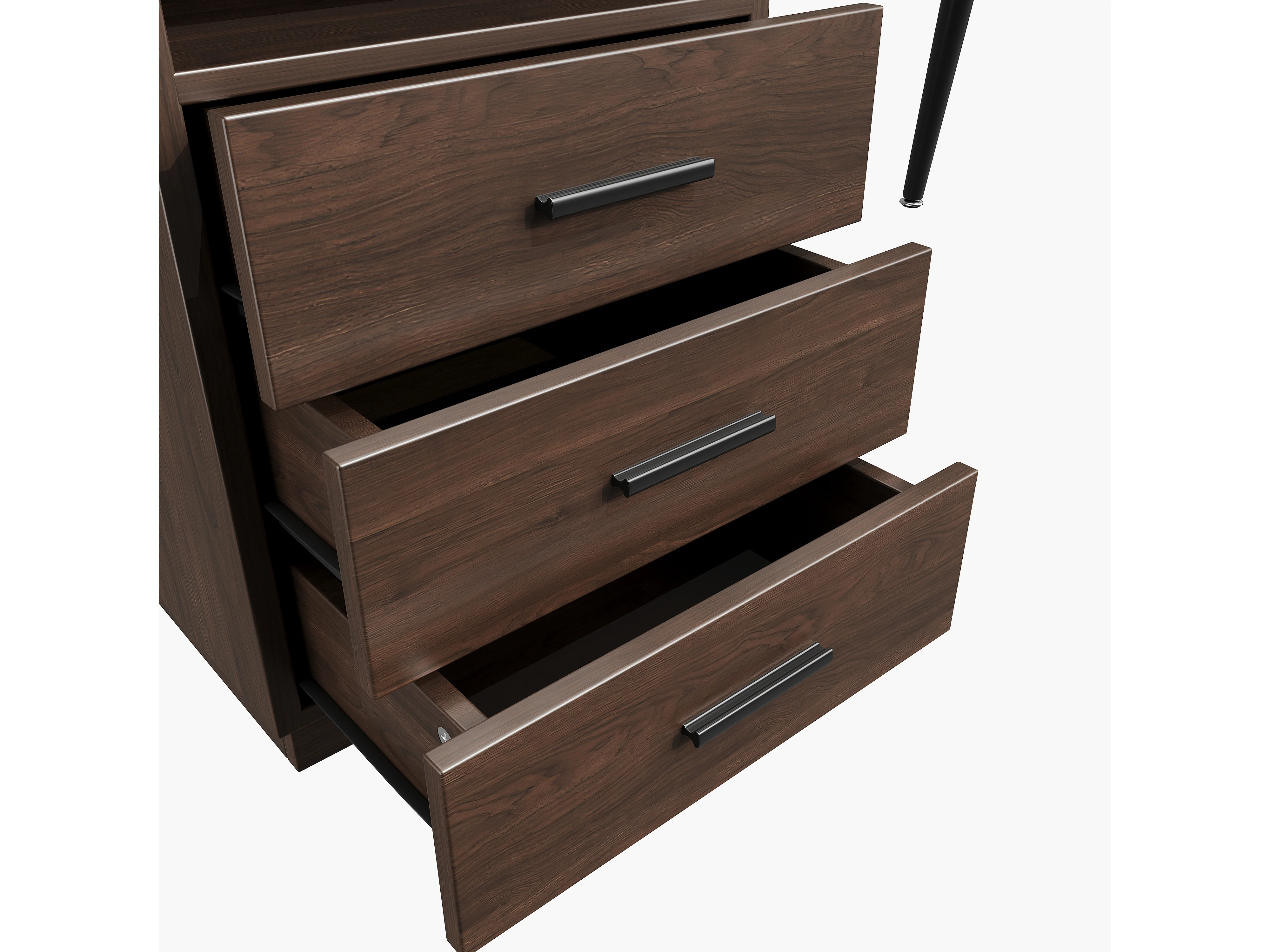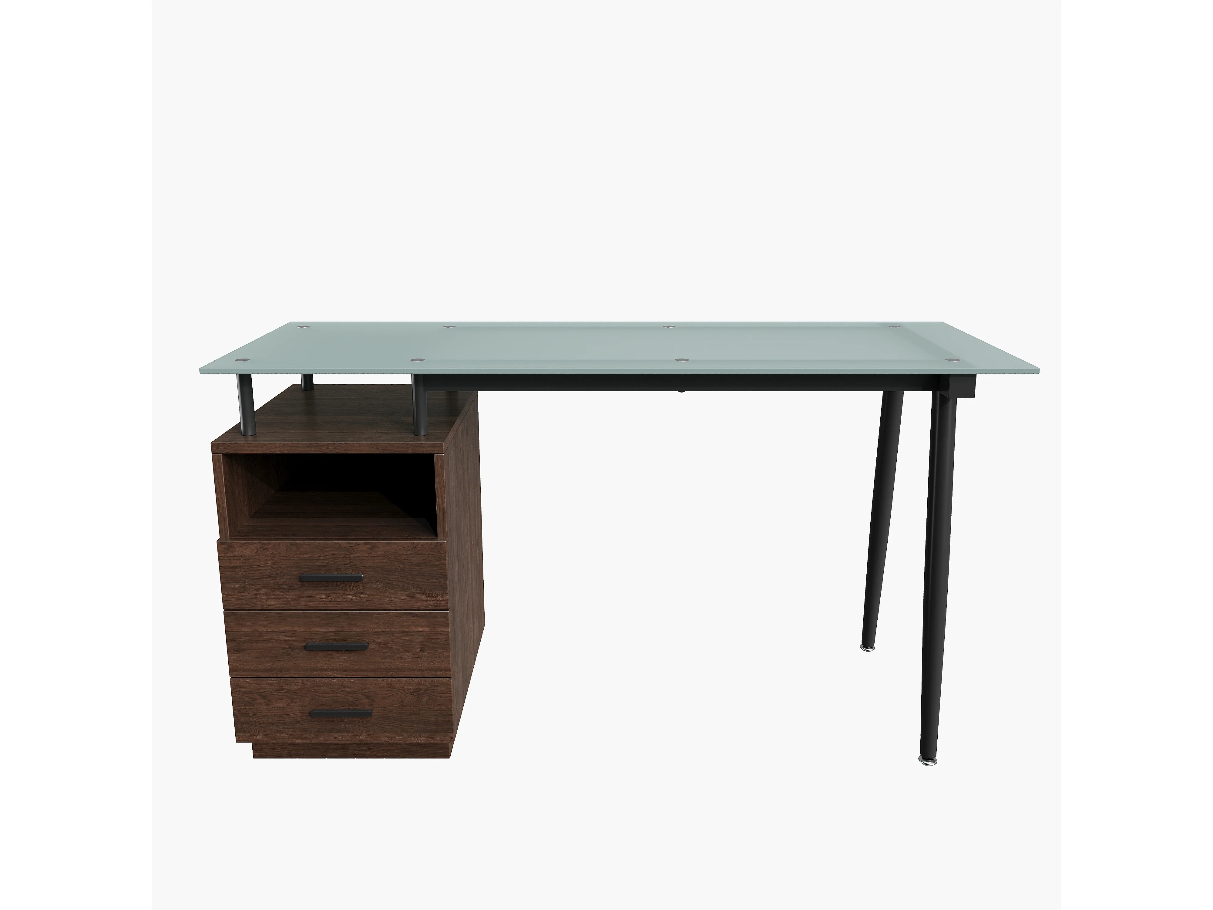 Moderner Schreibtisch 130x50x75 cm - 3 Schubladen und 1 Ablage - Glasplatte - Stahlrohrgestell - MDF+Metall - Braun