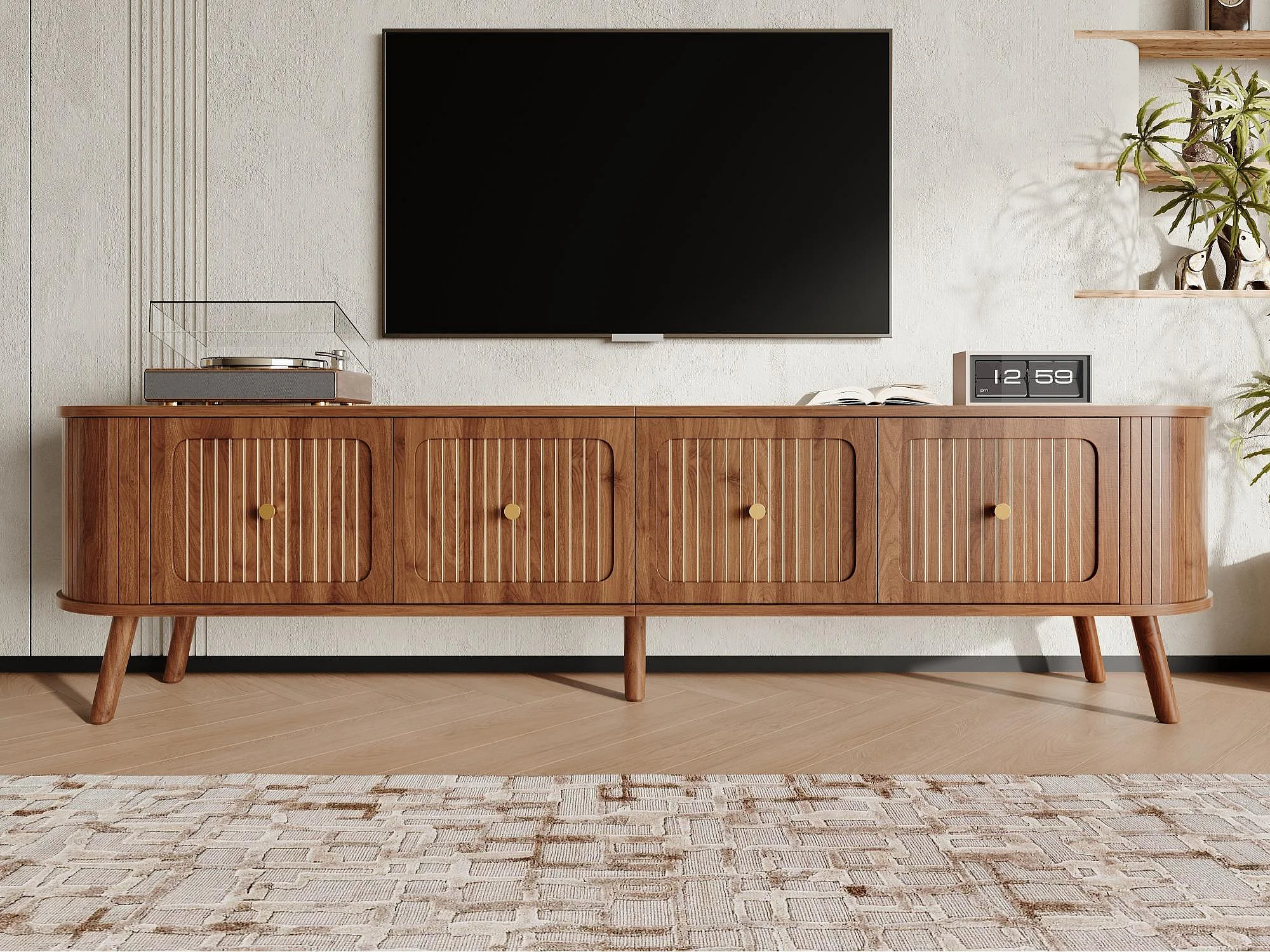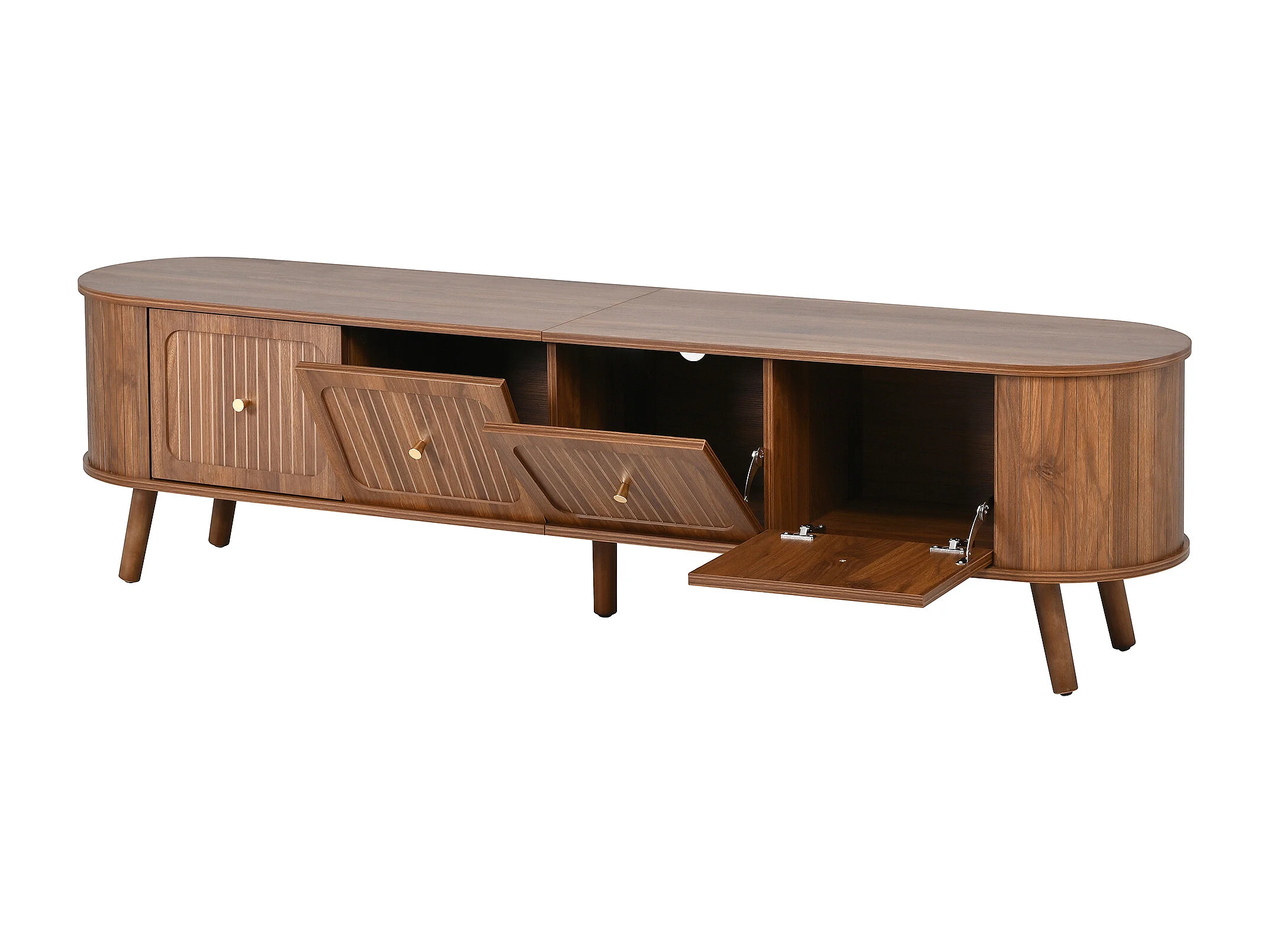 Moderner TV-Schrank 180x38x47 cm - 4 Türen - vergoldete Griffe - Holzfüße - braun