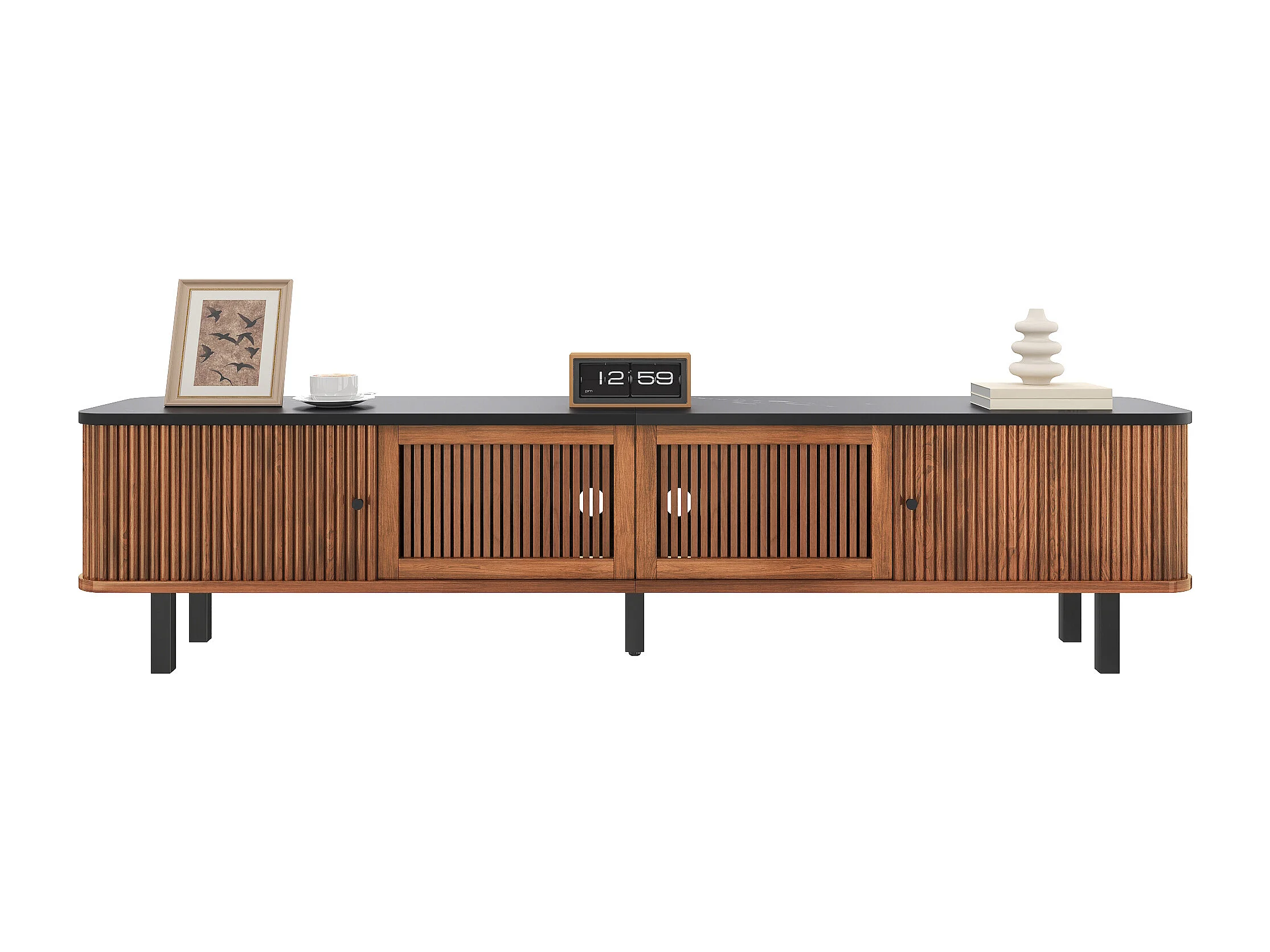 Moderner TV-Schrank 190x35x45 cm - 2 Schiebetüren und 2 Gittertüren - Braun