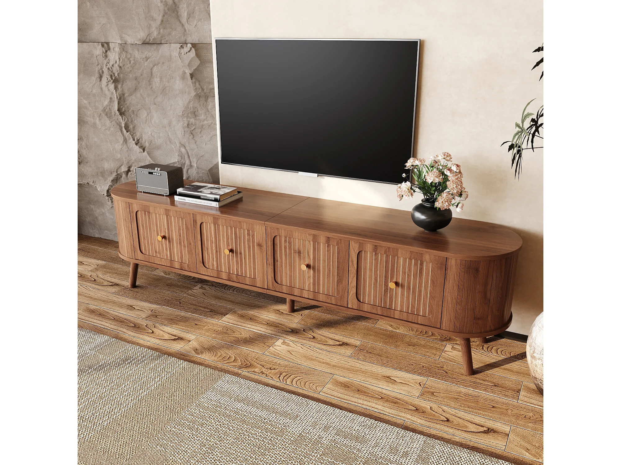 Moderner TV-Ständer – 180 x 38 x 47 cm – mit 4 Türen und Holzbeinen – einzigartiges Design – MDF + Spanplatte – braun