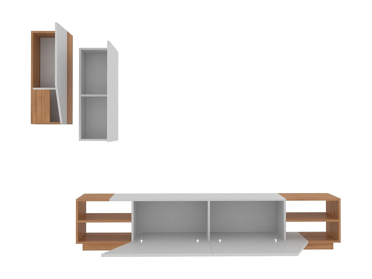 Moderner TV-Ständer – 140 cm – Walnuss und Weiß – Spanplatte