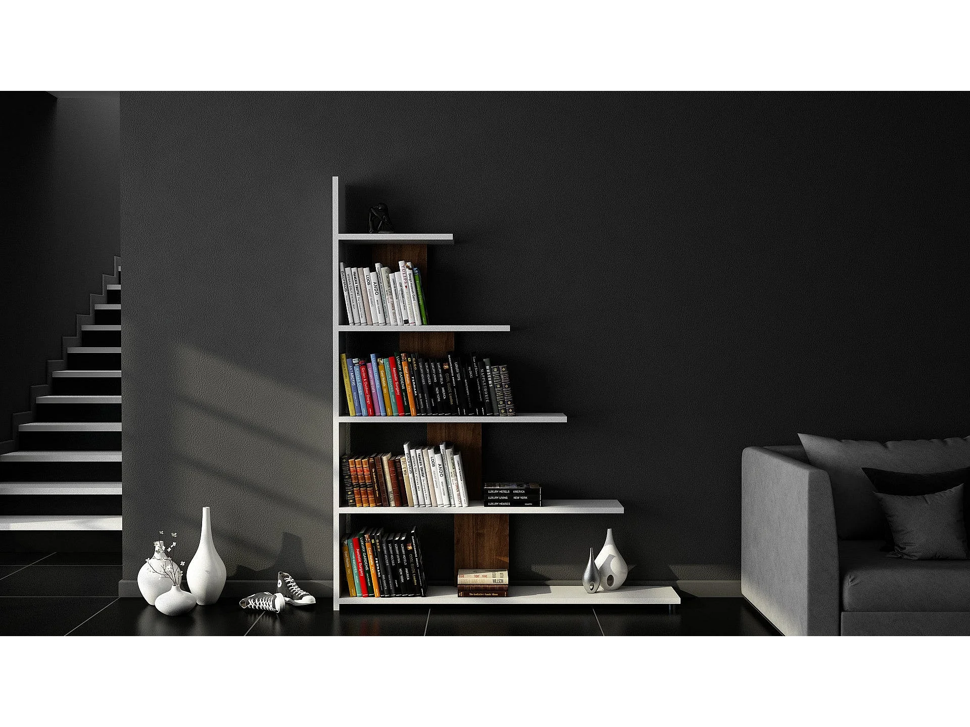 Modernes Bücherregal – 46,8 x 21,3 x 170 cm – Weiß und Walnuss – Melaminbeschichtete Spanplatte