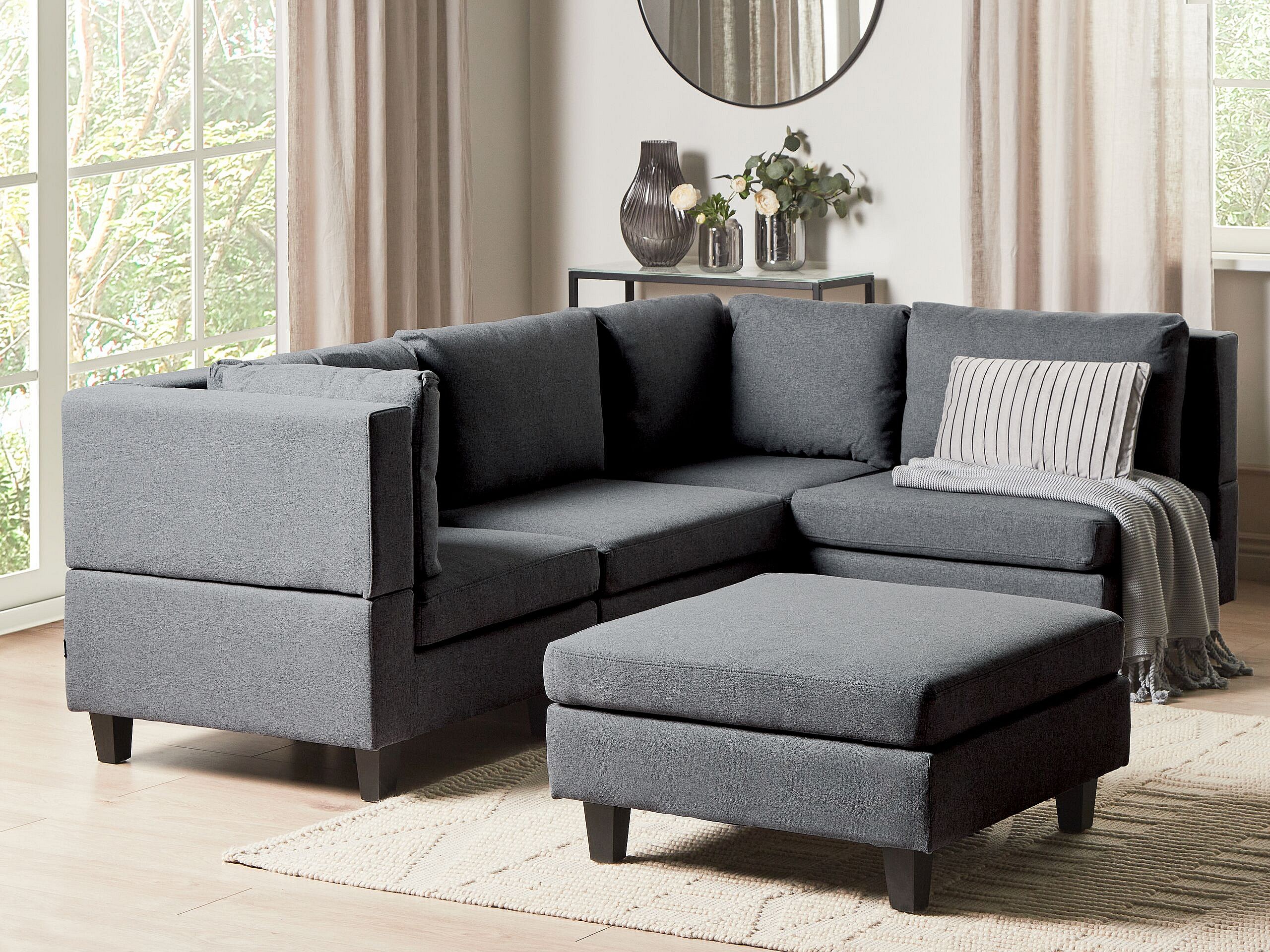 Modul Ecksofa UNSTAD Stoff Dunkelgrau mit Ottomane 4-Sitzer linksseitig
