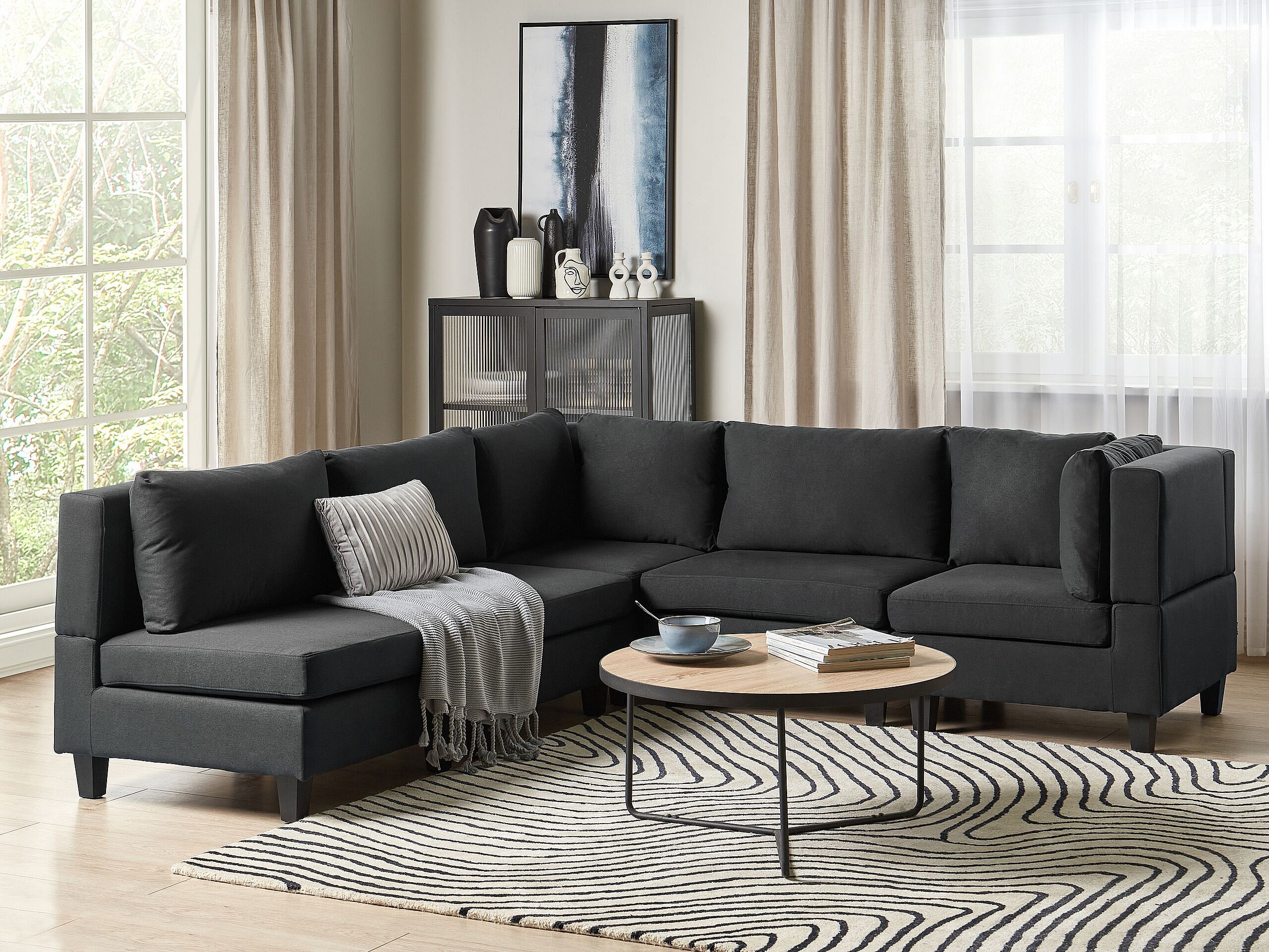 Modul Ecksofa UNSTAD Stoff Schwarz 5-Sitzer linksseitig