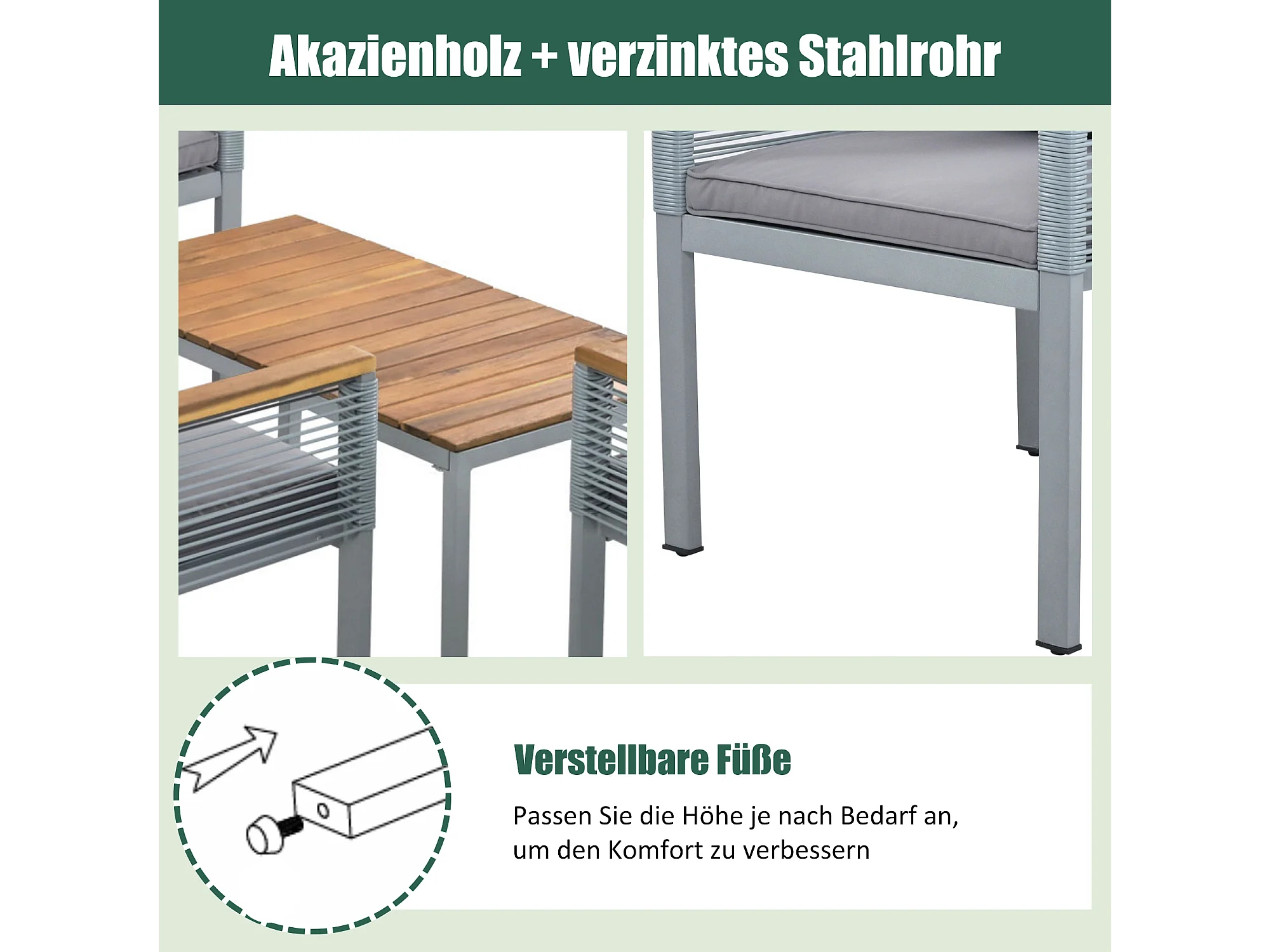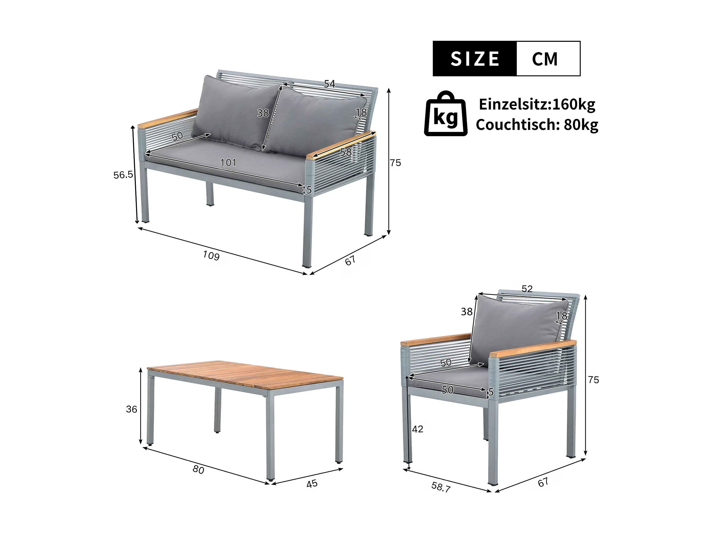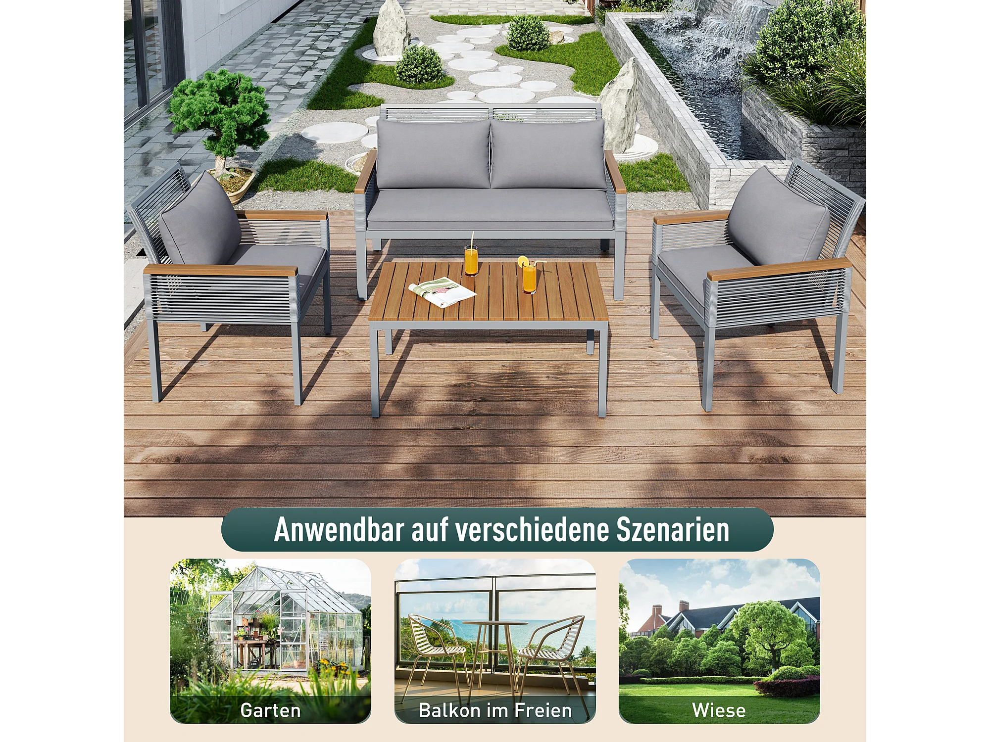 Modulare Gartenmöbel aus Metall: 1 2-Sitzer-Sofa + 2 Sessel + 1 Couchtisch - Grau