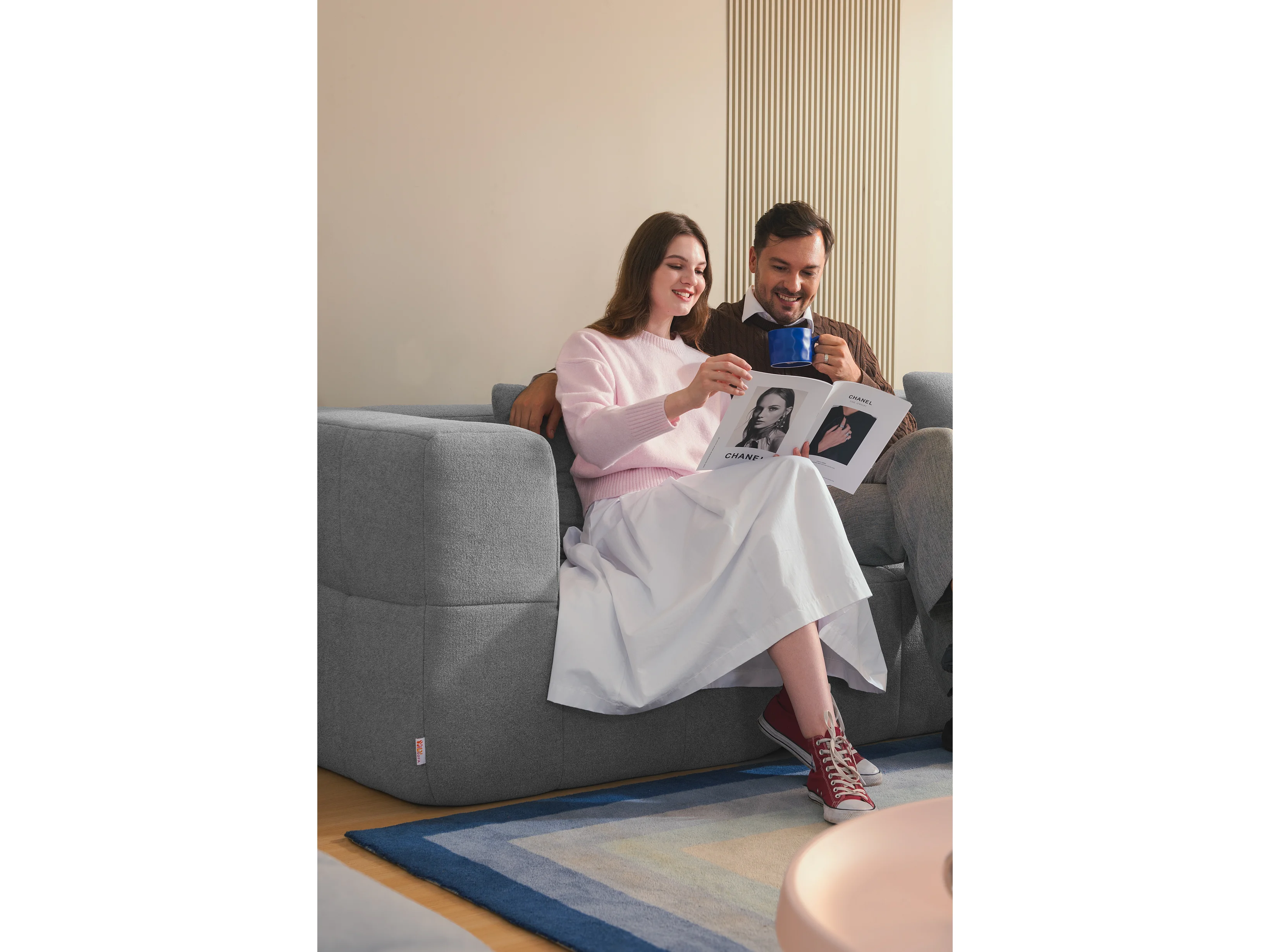 Modulares Ecksofa MILYSOFA SOFABULOUS 4-Sitzer mit Chaiselongue aus feinem Bouclé-Stoff wolkengrau