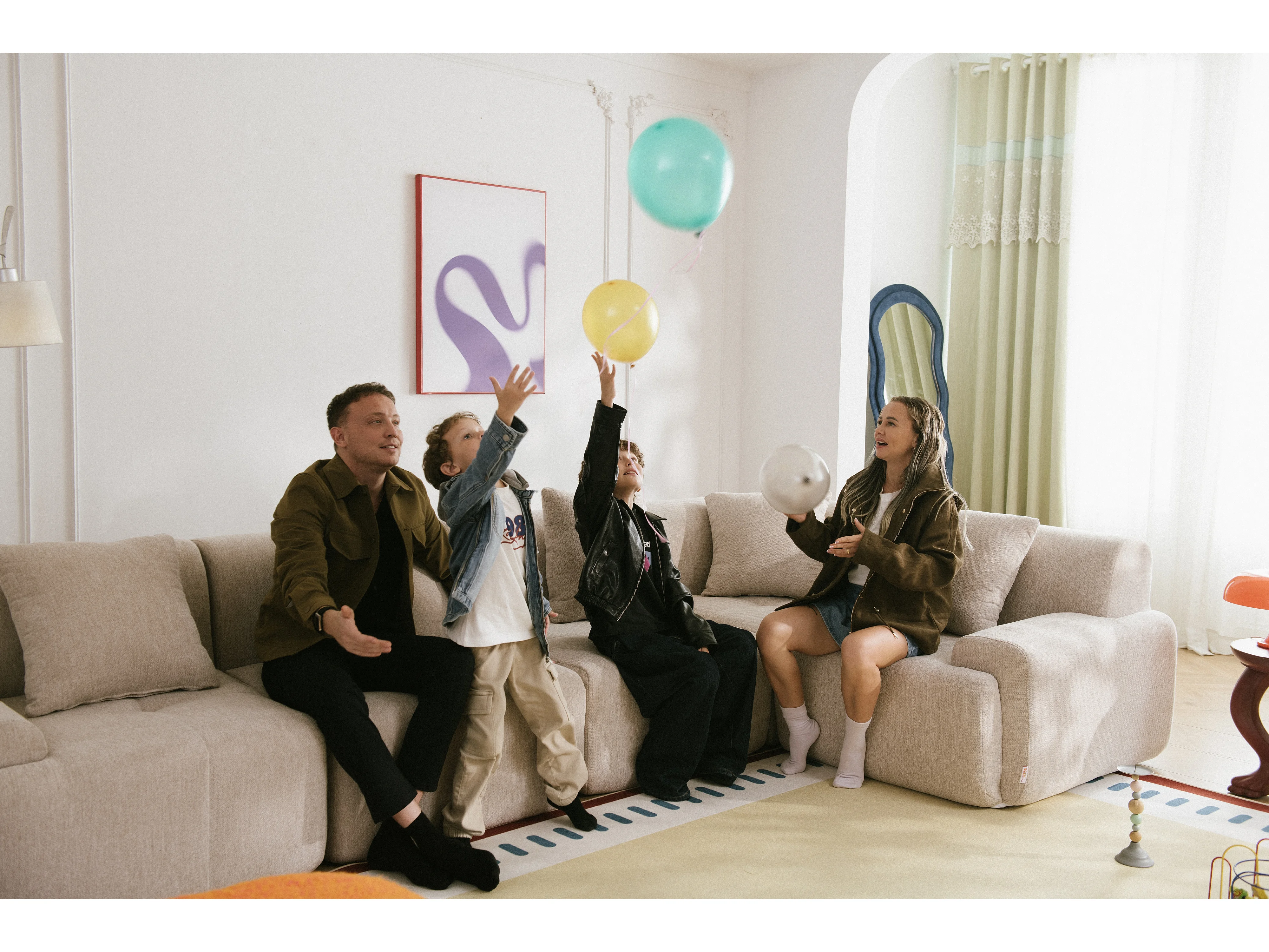 Modulares Ecksofa MILYSOFA SOFAMOUS 4-Sitzer mit Chaiselongue aus Chenille-Stoff sandbeige