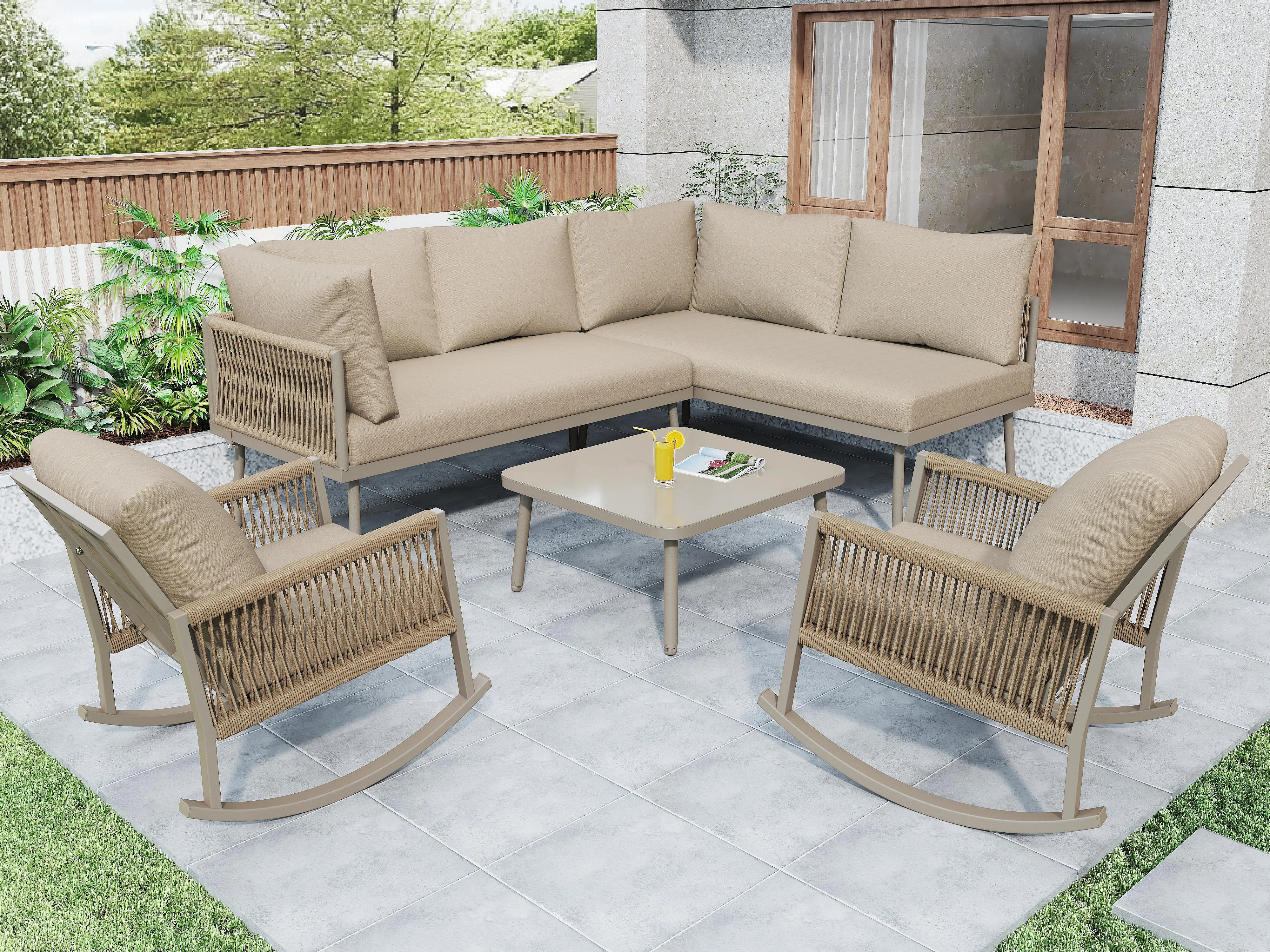 Modulares Garten-Set mit 2 Schaukelstühlen und Ecksofa - Design aus Geflochtener Kordel und Metall - Atmungsaktive Kissen - Sand/Beige