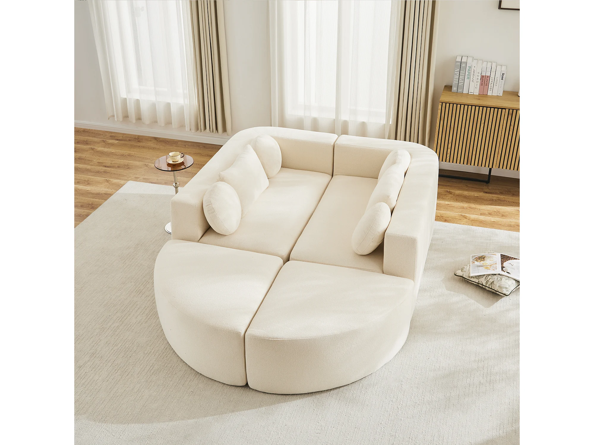 Modulares Sofa aus Chenille - mit Schlaffunktion - kein Zusammenbau erforderlich - veränderbare Form - Beige