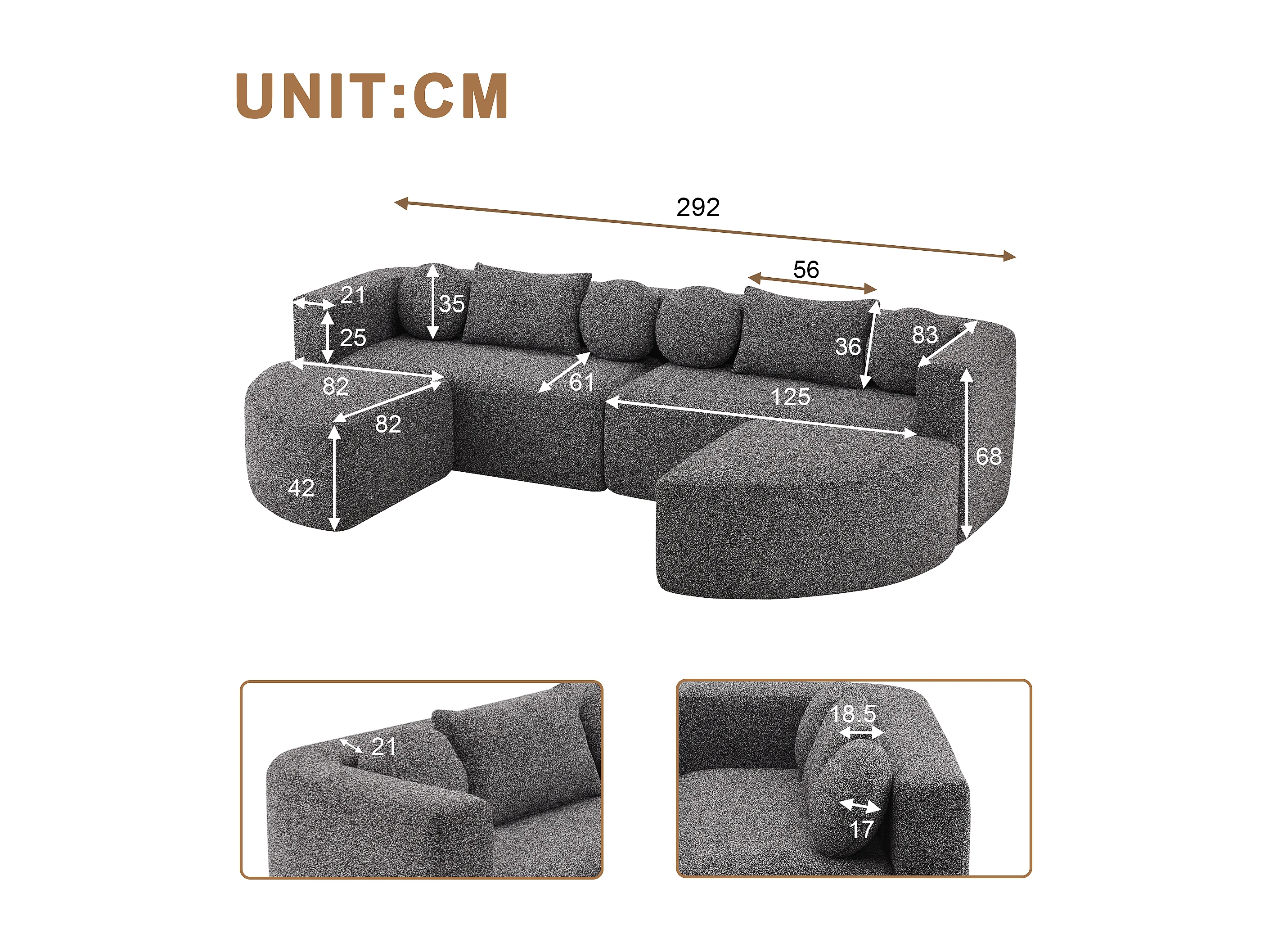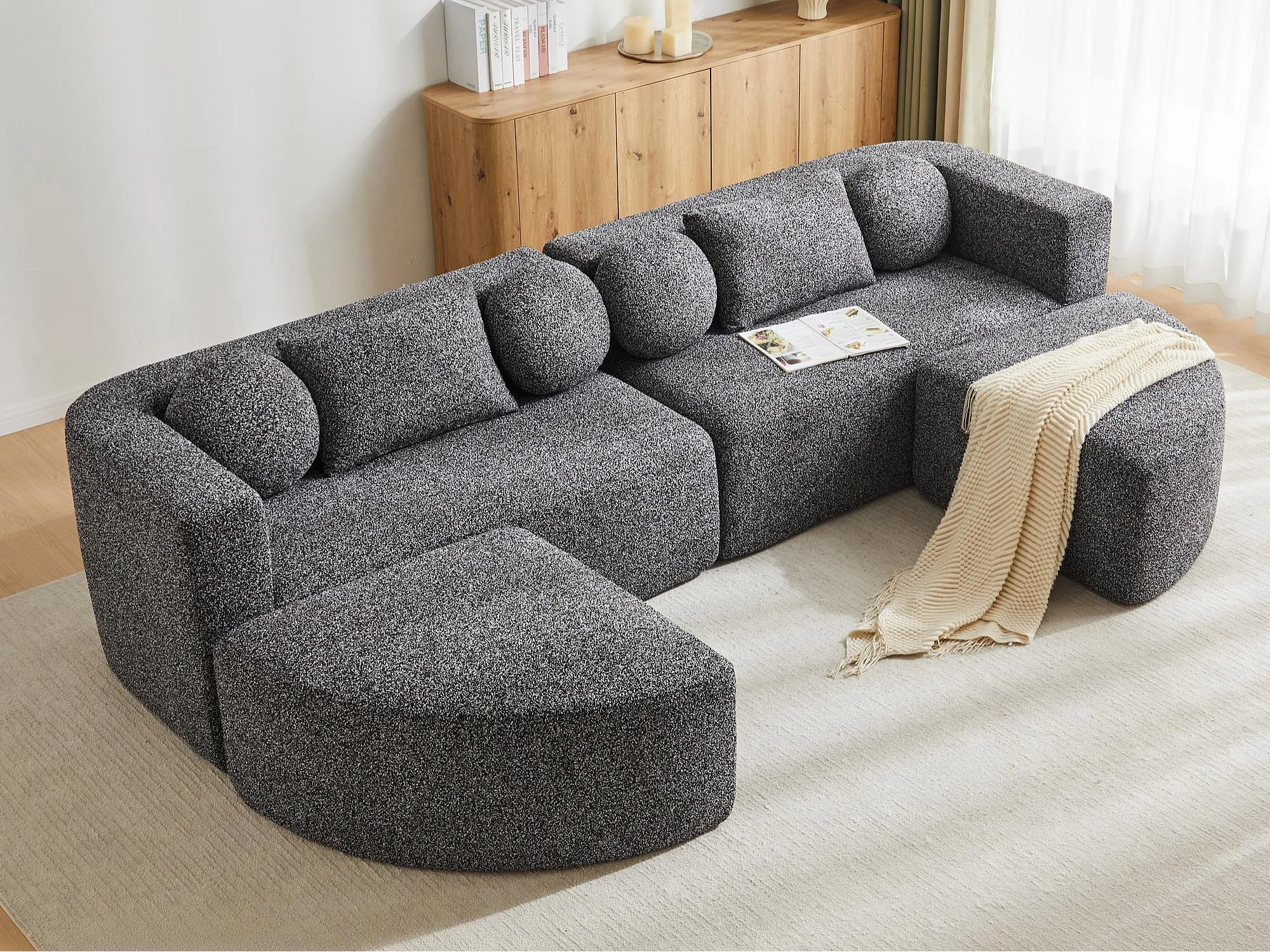 Modulares Sofa aus Chenille - mit Schlaffunktion - kein Zusammenbau erforderlich - veränderbare Form - Schwarz