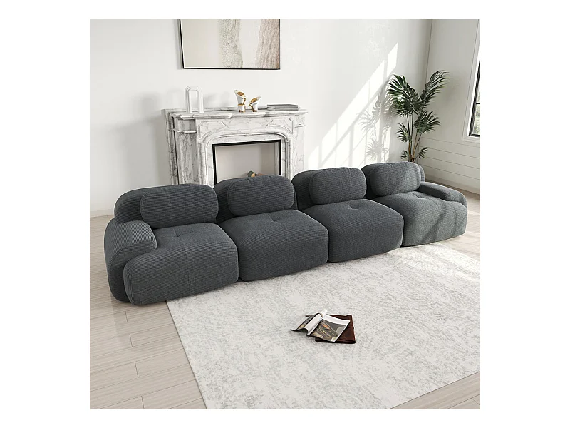 Modulares Sofaset aus Rippvelours: Hocker - 92.5x75x44cm - Beige