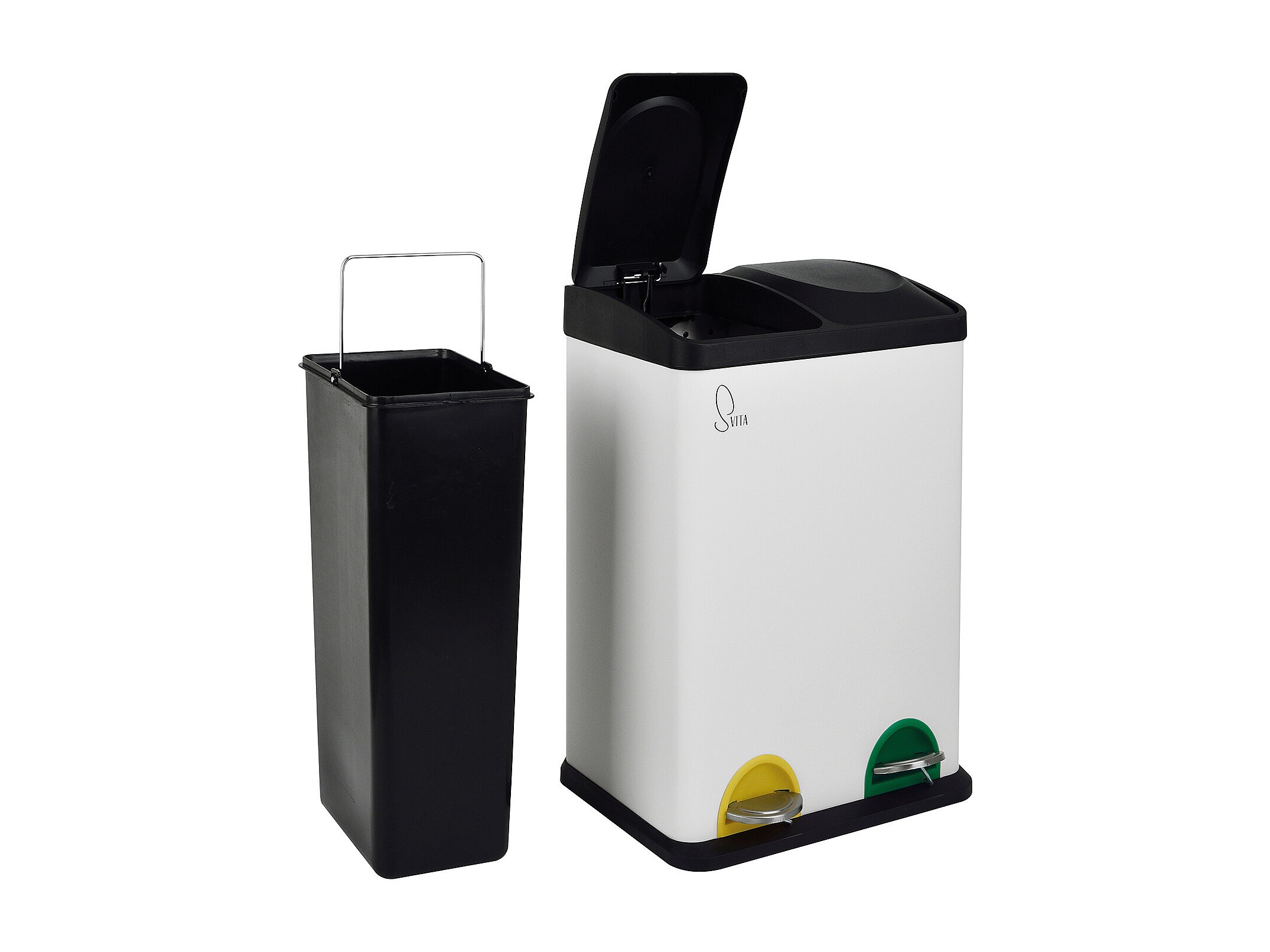 MÜLLEIMER TC2X20 Küchen-Eimer 40Liter Fassungsvermögen 2x20L Abfalleimer 2er-Mülleimer Weiß